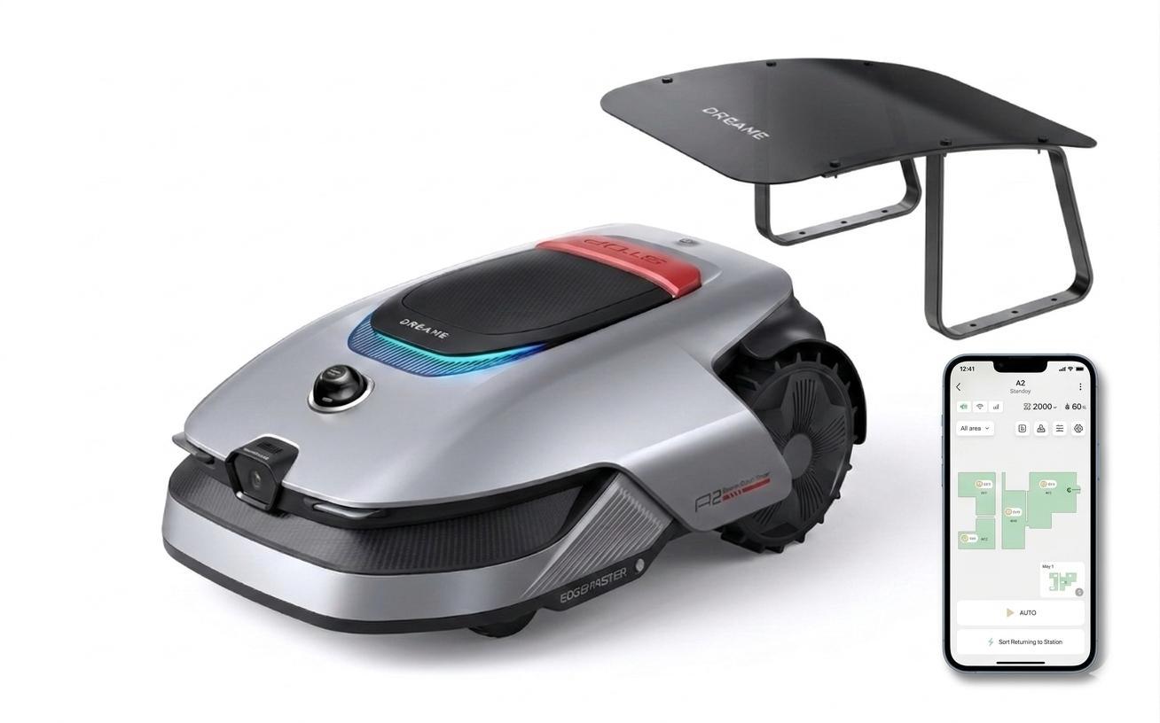 lieferbar-in 2-3 Werktagen bei dirDreame Rasenmähroboter A2 1200, bis 1200 m2 Rasenfläche, Kantenschnittsystem, automatische Begrenzungseinrichtung, KI-Kamera grau