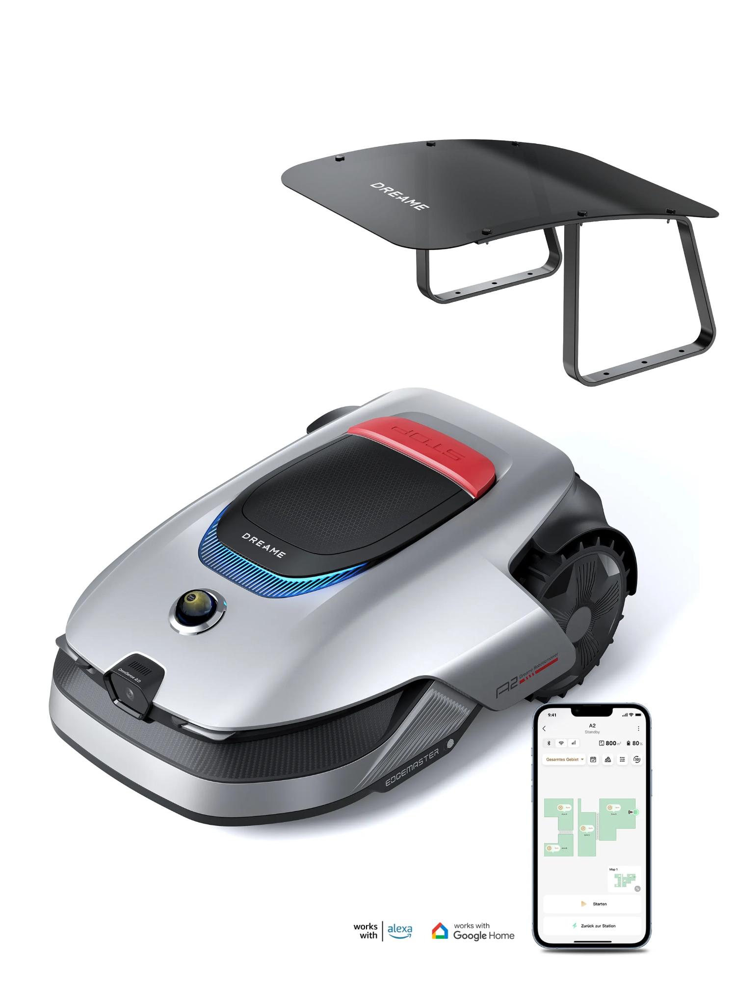 Auf Lager Versand durch AmazonDREAME Mähroboter A2 ohne Begrenzungskabel, 360° 3D LiDAR + AI Vision, Auto-Begrenzungseinrichtung,3000 m²,Dual-Fusion-Kartierung, OmniSense-2.0-Hindernisvermeidung, EdgeMaste-Schneidsystem