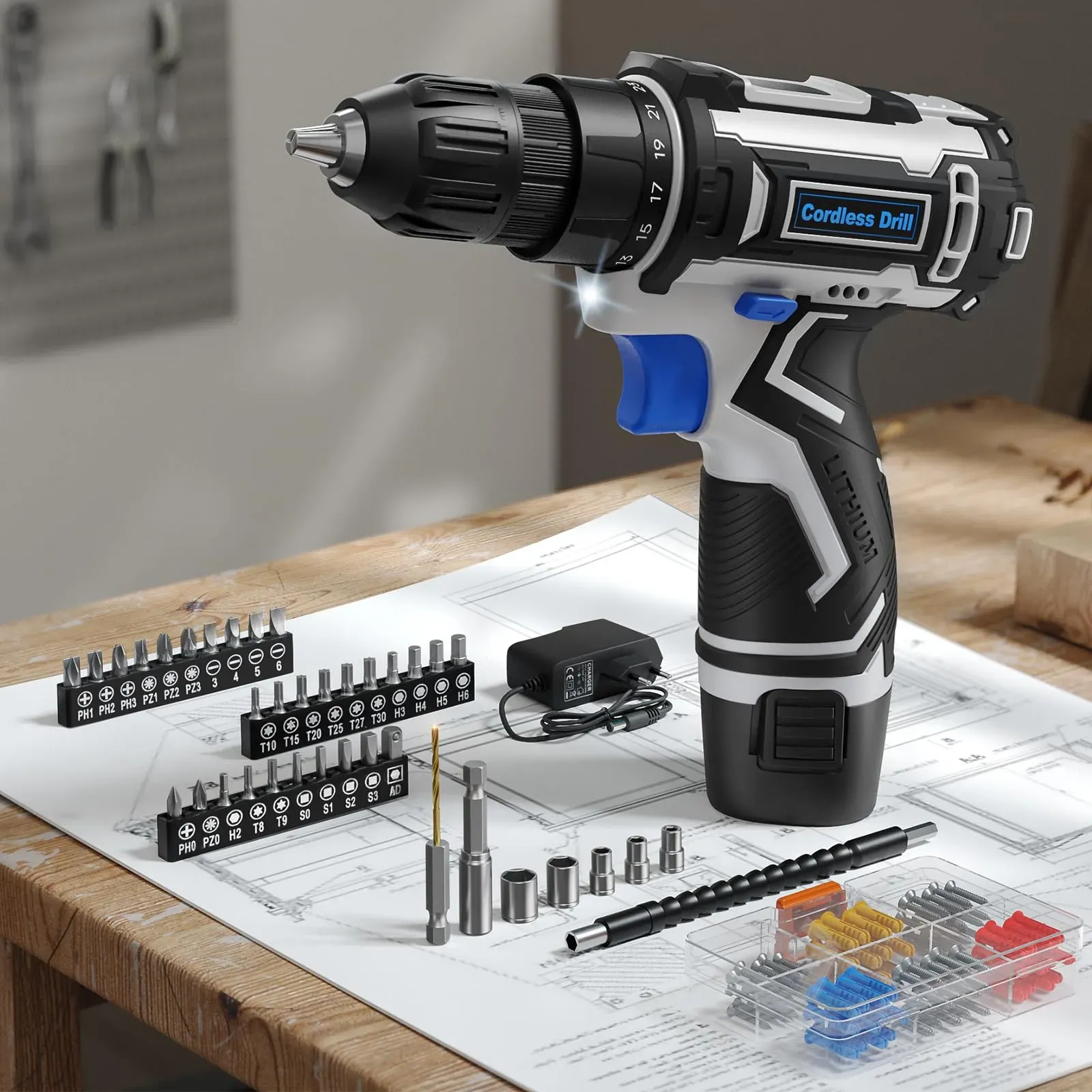 Kategorie: Akkuschrauber - viwko - 98-Teiliges Hochwertiges Zubehörset: Das VIWKO Akkuschrauber Set enthält 98 praktische und durchdachte Zubehörteile. Mit dem 60-Dehnschrauben Wandmontage-Zubehörset können Sie Wanddekorationen, Bilderrahmen, verschiedene Poster und andere Gegenstände sicher an der Wand befestigen. Die 30 Schrauberbits eignen sich zum Festziehen von Schrauben, zum Zusammenbauen von Möbeln und zum Bohren. Der flexible Schaft ermöglicht das Festziehen von Schrauben in engen Räumen.Die Kombination aus hochwertigen Bohrern, Steckschlüsseln und Verlängerungsstangen ermöglicht Ihnen den freien Wechsel zwischen dem Bohren von Holz und Kunststoff sowie das einfache Festziehen oder Lösen von Schrauben und ermöglicht Leichtes und kompaktes Design: Mit Akku Bohrschrauber Set von nur 0,98 kg eignet sich dieser kompakte Bohrer für den Dauereinsatz und ist ideal für Frauen, Senioren und Anfänger. Sein schlankes, ergonomisches Design gewährleistet eine einfache Bedienung für Menschen aller Erfahrungsstufen. Dies ist ein tolles Geschenk für Freunde, Familie und Heimwerker während der Feiertage Präzise Steuerung, Starke Leistung: Der leistungsstarke Reinkupfermotor mit 25 Nm Drehmoment liefert stabile Leistung. Dieser Akkubohrer verfügt über 25+1 Drehmomenteinstellungen für präzises Anziehen/Lösen von Schrauben und bietet eine präzisere Steuerung 2000 mAh Akku Mit Hoher Kapazität und Schnellladegerät: Der VIWKO Akkubohrer Klein ist mit einem 2000-mAh-Akku ausgestattet, der ... Der JBM54526 Drehmomentschlüssel ist eine kostengünstige und dennoch zuverlässige Option für den Bereich von 5-25 Nm. Manomano.d e