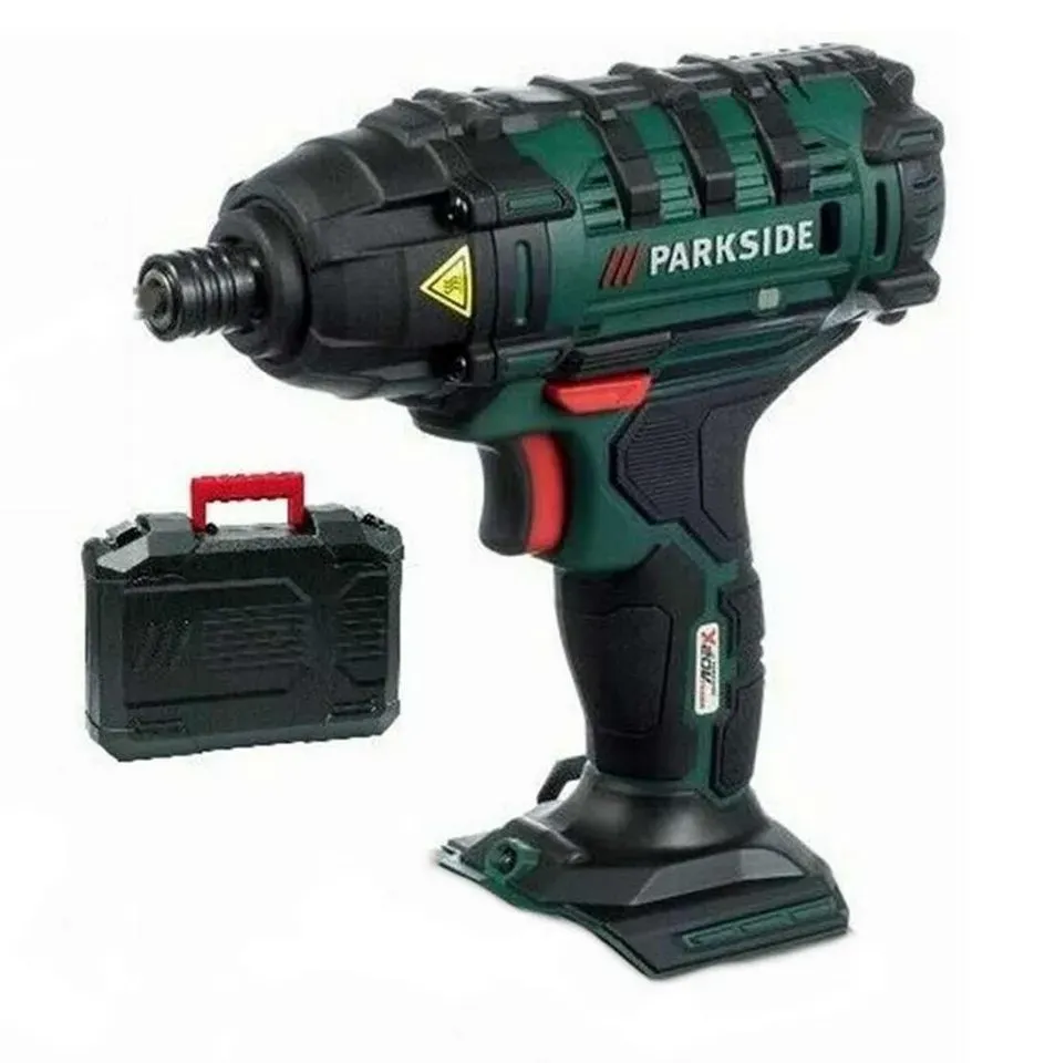 - - Bürstenloser Motor - besonders hohe Lebensdauer durch geringeren Verschleiß 4 vorwählbare Drehmomentstufen mit LED-Anzeige des eingestellten Werts Ideal für Arbeiten an schwer zugänglichen Stellen Sechskant-Werkzeugaufnahme mit Schnellverschluss Stufenlos steuerbare Drehzahl Mit Rechts- und Linkslauf-Funktion Griff und Gehäuse mit rutschhemmendem Softgrip Im praktischen Aufbewahrungskoffer Bohren nur mit 6-Kant-Bohrern möglich 10 x höhere Lebensdauer im Vergleich zu DC-Bürstenmotoren Gerät kompatibel mit allen Akkus der Serie Parkside X 12 V Team Lieferung erfolgt ohne Akku und Ladegerät Den passenden Akku sowie das Ladegerät kannst du hier bestellen. Produktmerkmale table{width:100%;}td{padding-right: 30px; padding: 0.5rem; border-bottom: 0.0625rem solid #e3e4e5;} tr:nth-child(odd) {background-color: #F2F3F4;} Betriebsart: Akku Akkuspannung: 20 V Drehmomentstufen: 4 Leerlaufdrehzahl: 0-3600 min -1 Drehmoment lösen: max. 170 Nm Drehmoment anziehen: keine Angabe Schlagzahl: 0-4000 min -1 Werkzeugaufnahme: 1/4' (Ø 6,35 mm) Arbeitsleuchte: ja Aufbewahrungskoffer: ja Zubehör: kein Zubehör Material: Kunststoff Maße: ca. 18,4 x 12,5 x 6,6 cm Gewicht: ca. 780 g Alle kompatiblen Geräte unserer 12-Volt-Serie findest du hier: - Google-Altersgruppe: Erwachsene - Versandkostenfrei: false - Google-Geschlecht: unisex - Lieferzeit: 5 Tage - Sofort verfügbar: true - Für wen: Unisex - - - bei 326657 / Lidl DE - gefunden von shopping24 Ein extrem günstiger Akku-Schlagschrauber, der sich gut für den gelegentlichen Reifenwechsel oder einfache Aufgaben eignet. ![]() ![]() Akku Schlagschrauber - 1200Nm Elektrischer eBay Drehschlagschrauber Kfz Reifenwechse DE