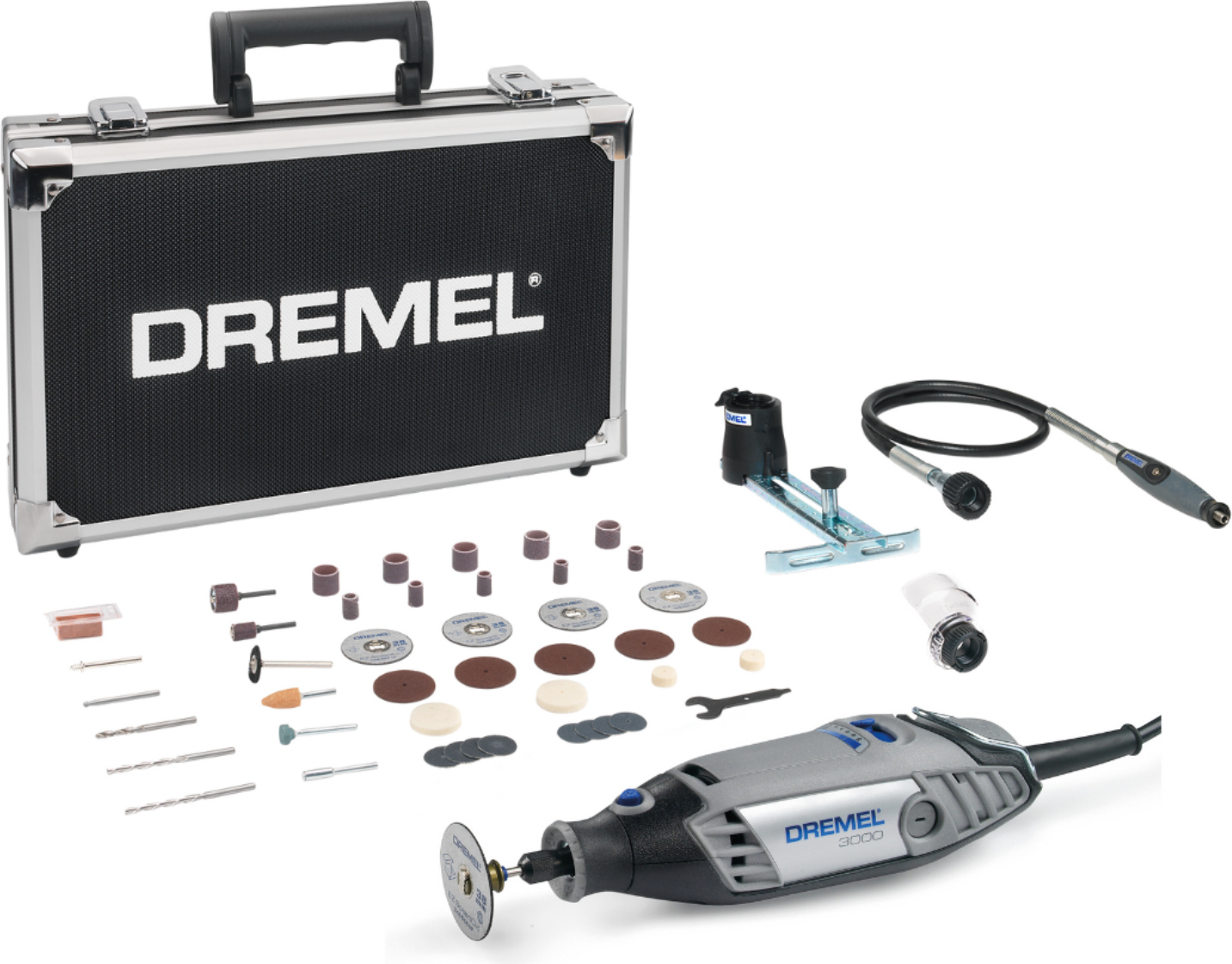 Kategorie: Multifunktionswerkzeuge - DREMEL - GTIN:8710364074686 - Eigenschaften: DREMEL® 3000-1/25 EZ Multifunktionswerkz mit 1 Vorsatzgerät, 25 Zubehöre - 71,99 Euro bei Contorion.de - gefunden von billiger.de Dieses Set bietet das Dremel 3000 mit 2 Vorsatzgeräten und 25 Zubehörteilen, was es besonders vielseitig macht. ![]() ![]() DREMEL® 3000-2/25 Multifunktionswerkzeug (130 W), 25 Zubehöre, 2 Vorsatzgerät