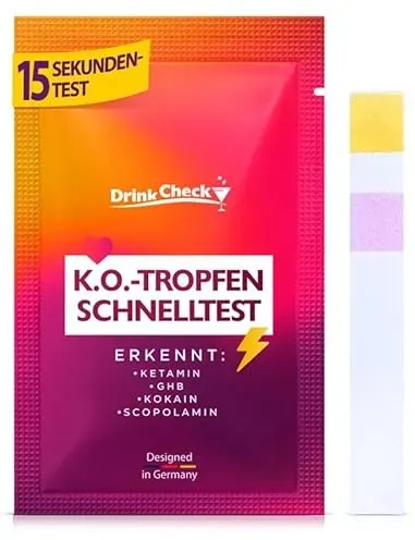 Zustand: Neu - Drogentests - DrinkCheck parahealth diagnostics - CD008 DC-001 - EAN: 4262408980599 - š¡Schnelle Erkennung in 15 Sekunden - Erkennt über 6 gängige K.O.-Tropfen mit nur 2 Tropfen Getränk - mehr als jeder andere Test auf dem Markt. Ein einfacher Farbtest gibt sofort Klarheit. 📱Ultimativer K.O. Tropfen Schutz: Die diskrete Verpackung im Kreditkartenformat passt in jede Tasche, Geldbörse oder unter die Handyhülle. Zuverlässiger Schutz in Sekunden, wenn es darauf ankommt. 🆠Geprüfte Qualität aus Deutschland: DrinkCheck steht für zuverlässige Testergebnisse. Jeder Teststreifen ist einzeln versiegelt und bis zum Gebrauch vor Umwelteinflüssen geschützt. 💖Präventiver Selbstschutz: Perfekt für Bars, Clubs, Festivals oder private Zusammenkünfte. Schutz durch Abschreckung reicht nicht - ein diskreter Test gibt Sicherheit und Kontrolle. œ Einfache Anwendung: Benutzerfreundliches Design - kein Fachwissen erforderlich. Klare Farbänderung zeigt manipulierte Getränke sofort an. Individuell verpackt für maximale Hygiene und Zuverlässigkeit. - Verkäufer: Bormann Bioscience im amazon.de Marketplace ![]() ![]() DrinkCheck Trinksicherheitsteststreifen, 1 Test - Schadstoffe in Sekunden erkennen - Tragbares persönliches Sicherheitsset für Clubs und Partys - Entspricht kalifornischem Recht