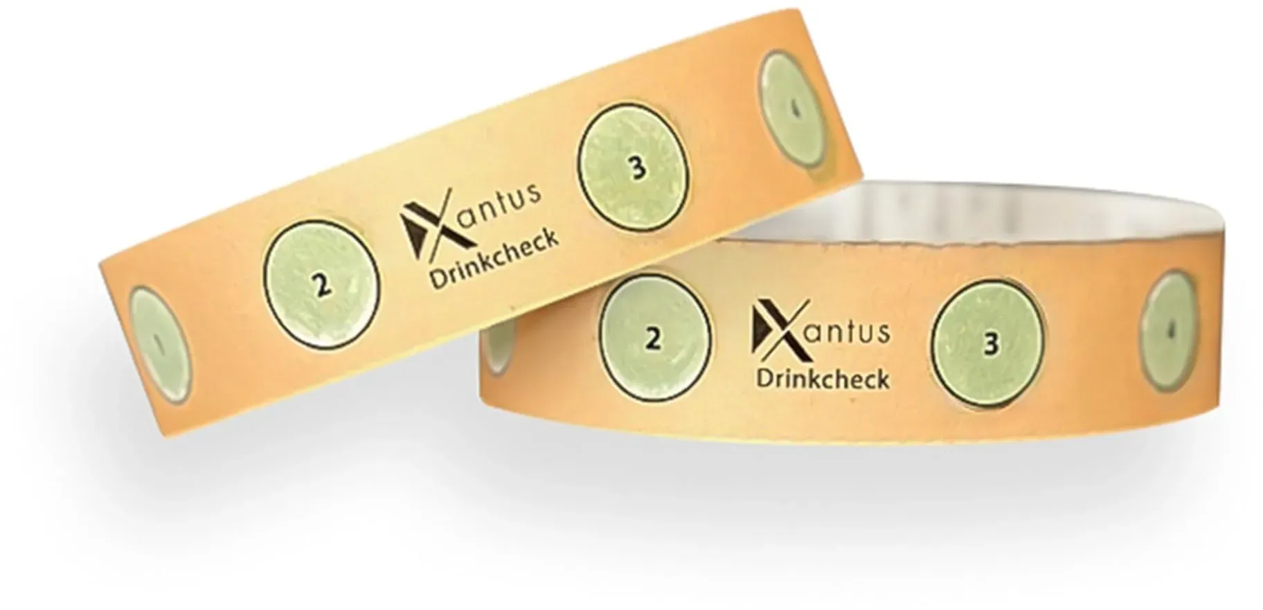 Gewöhnlich versandfertig in 3 bis 4 TagenXantus Drinkcheck Armband - Dein Schutz vor KO Tropfen | Teste Dein Getränk auf KO Tropfen GHB | Beige | 2 Stück = 8 Tests | für sicher feiern