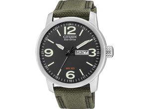 Uhren Mode Uhren Schmuck - - Solar Drive Funk. Diese Herrenarmbanduhr besticht durch schlichte Eleganz und das gut lesbare Zifferblatt rundet das schlichte äußere der Uhr ab. Aus Licht wird funkgenaue Zeit. Licht erzeugt Strom, der ein Funkwerk antreibt. Ein Batteriewechsel ist dank des Solarbetriebs überflüssig., Produktdetails: Modellbezeichnung: EGS-11436-12L, Funktionen: Antrieb: Solar, Herstellerspezifische Antriebsbezeichnung: Solar Drive, Empfangstechnologie: Funk, Funkempfangsregion: in Europa, Anzeige: analog, Dunkelgangreserve: 180, Wasserdicht: bis 5 bar, Datumsfunktionen: automatischer Kalender, Tag, Wochentag, Zusatzfunktionen: autom. Zeitumstellung von Sommer- und Winterzeit, Farbe: Zifferblattfarbe: grau, Gehäusefarbe: silberfarben, Armbandfarbe: schwarz, Material: Gehäusematerial: Edelstahl, Armbandmaterial: Leder, Gehäuse: Gehäusebesonderheiten: Edelstahlboden verschraubt, Glas: Mineralglas, Armband: Verschluss Armband: Dornschließe, Maßangaben: Gehäusedurchmesser (ohne Krone): 40 mm, Stromversorgung: Anzahl Batterien: 1 Stk., Batterie-/Akku-Technologie: Lithium-Mangandioxid (LiMnO2), Details: Besondere Merkmale: Armbanduhr, Herrenuhr, Datum, Solar, Lederarmband, Technische Daten: WEEE-Reg.-Nr. DE: 46.550.909 - Google-Altersgruppe: Erwachsene - Versandkostenfrei: false - Sale: true - Google-Geschlecht: männlich - Lieferzeit: 3 Tage - Produktbewertung: High - Sofort verfügbar: true - Größe: one size - Für wen: Herren - Hersteller-Farbe: schwarz - Farbe: ... Diese Solaruhr von CITIZEN ist eine preiswerte und praktische Uhr für den Alltag mit Textilarmband. ![]() Solaruhr CITIZEN, grün (khakifarben), Armbanduhren, Herren, Armbanduhr, Herrenuhr, Datum, Textilarmband