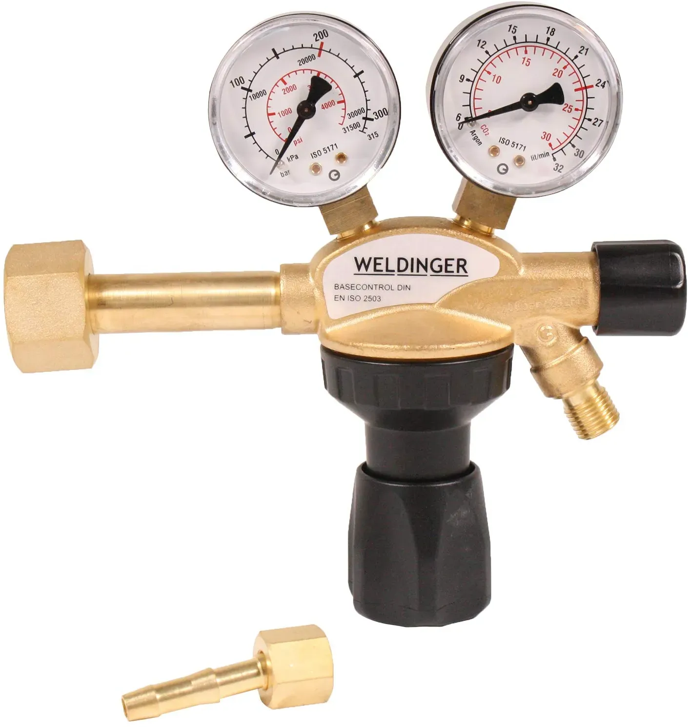 Verfügbarkeit: Auf Lager - Kategorie: Schweißzubehör - WELDINGER - GTIN:4251314274977 - WELDINGER Schutzgasregler 'pro' für Mehrweg-Gasflaschen mit komprimierten Schutzgasen (Argon, Mischgas, CO2) mit Inhaltsdruck- und Durchflussmengenmesser, Druck bleibt unabhängig vom Füllvolumen konstant kompaktes Design, hervorragend für die Montage geeignet Druckminderer in Profiqualität aus massivem Messing Eingang W21,8 RH, Ausgang 1/4' RH, max. Druck 200 bar - 49,99 Euro bei Amazon Marketplace Home Improvement - gefunden von billiger.de Der HELO Druckminderer mit Flowmeter bietet eine gute Kombination aus Funktionalität und Preis für Argon und andere Edelgase. ![]() ![]() HELO '173518' Druckminderer mit Flowmeter für Argon (und andere Edelgase), Schutzgas und CO2 Flaschen, Eingangsdruck 200 bar mit Flowmeter 0-30 L/Min, Arbeitsdruck ca. 10 bar.