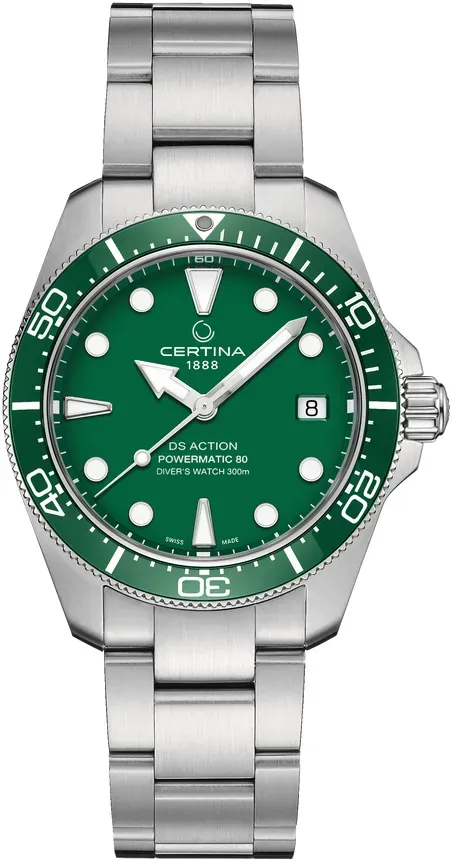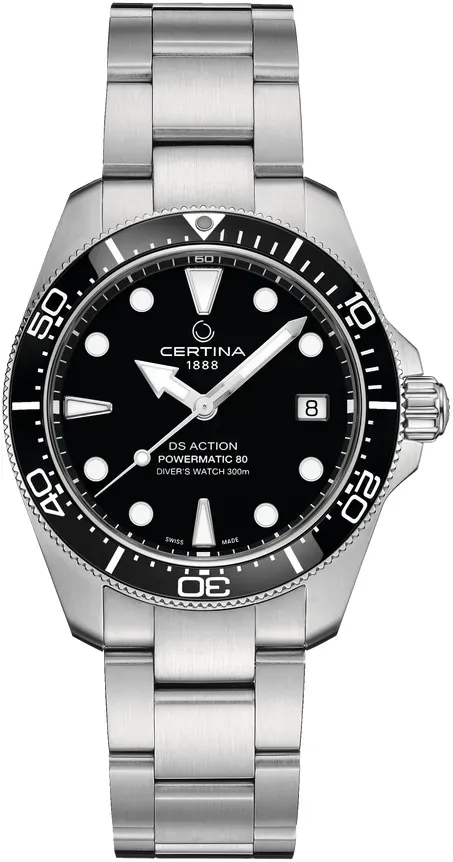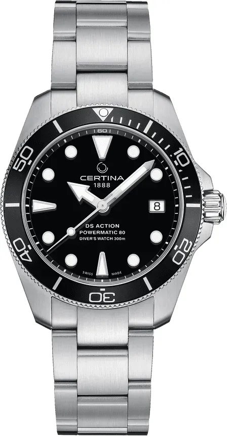? Was ist die Certina DS Action Diver 38mm?Die Certina DS Action Diver 38mm ist eine kompakte, 38 mm große Taucheruhr im klassischen Design, die speziell für aktive Träger und Tauchbegeisterte entwickelt wurde. Sie ist Teil der DS Action Kollektion und wird als 'kleine, aber extrem robuste' Taucheruhr beworben.
