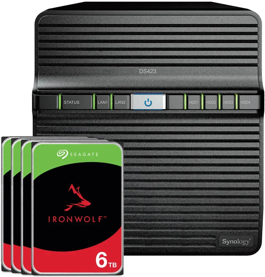 Lieferbar, Lieferzeit 1-3 WerktageSynology DiskStation DS423 4 Einschübe NAS-Server Leergehäuse + 2x Synology Plus 3.5" SATA HDD Festplatte 6TB (12TB)