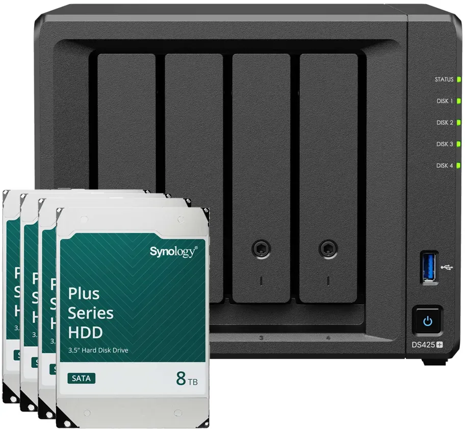 sofort ab Lager / 24h-Service möglichSynology DS425+ 32TB Synology Plus HDD NAS-Bundle NAS inkl. 4x 8TB Synology Plus HDD 3.5 Zoll SATA