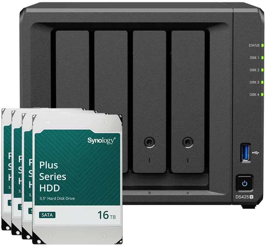 sofort ab Lager / 24h-Service möglichSynology DS425+ 64TB Synology Plus HDD NAS-Bundle NAS inkl. 4x 16TB Synology Plus HDD 3.5 Zoll SATA