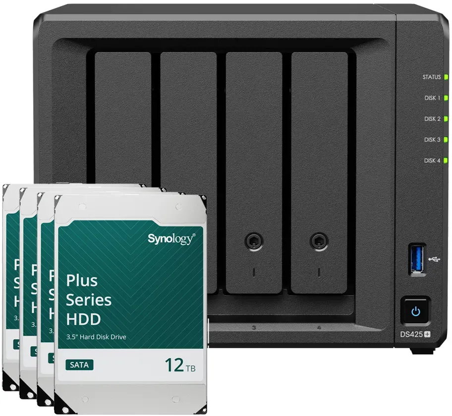 sofort ab Lager / 24h-Service möglichSynology DS425+ 48TB Synology Plus HDD NAS-Bundle NAS inkl. 4x 12TB Synology Plus HDD 3.5 Zoll SATA