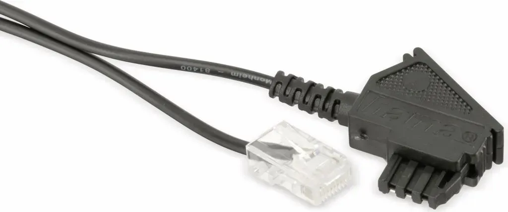 2 Händlerangebote bei billiger.de - Kategorie: Zubehör für ISDN Telefone - goobay - TAE F Kabel (Universal Pin Out) zum direkten Verbinden von DSL Router mit der Telefondose. Direktanschluss. TAE-F Stecker (2 adrig) auf RJ11 / RJ14 Stecker 6P4C (4 adrig) Telefonkabel zum Anschluss von Telefon und Kombifaxgerät an eine TAE Anschlussdose; Geeignet für Geräte von Siemens / Vodafone / Deutsche Telekom / mit internationaler PIN-Belegung Die F-Codierung steht für Fernsprechen und ist für Telefone vorgesehen. Aber auch NTBA oder DSL Splitter können in die F-Buchse eingesteckt werden Genormte Modularstecker (TAE-F-Stecker zu RJ11-Stecker) mit 2/4-adriger-Belegung: 1(a) - 2+3, 2(b) - 4+5; Telefonanschlusskabel ist nicht geeignet für Endgeräte mit Wecker-Ausgang (W) 1x TAE-Stecker mit Knickschutz & 1x RJ11-Stecker mit Rastnase; TAE Anschlusskabel mit kupferkaschiertem Aluminiumleiter und vergoldeten Kontakten für eine klare Signalqualität - GTIN:4040849685361 Dieses deleyCON Routerkabel bietet eine zuverlässige Verbindung für DSL/ADSL/VDSL-Router zu einem fairen Preis. ![]() ![]() deleyCON 6m Routerkabel TAE-F auf RJ45 (8P2C) Anschlusskabel Kompatibel mit DSL ADSL VDSL Fritzbox Internet Router an Telefondose TAE - Schwarz