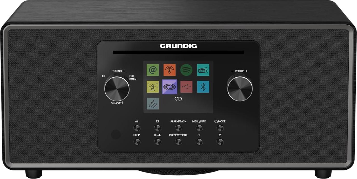 Auf Lager Versand durch AmazonGrundig DTR 7100 All-In-One Internet- und Digitalradio DAB+, FM, 2.1 Radio mit Subwoofer, 42 W RMS, CD Laufwerk, USB, Spotify Connect, Alarmfunktion, Einschlafautomatik, Farbdisplay, Schwarz