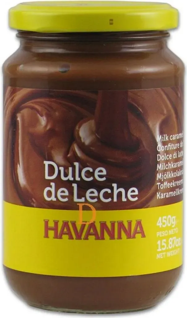 EAN: 7791875100003 - Milchkaramellcreme HAVANNA, Glas 250g.Dulce de leche (wörtlich etwa: Süßes aus Milch oder Milchkonfitüre) ist ein in ganz Lateinamerika verbreiteter Brotaufstrich bzw. eine Creme aus Milch, Zucker und Vanille. Verwendung findet Dulce de Leche auch als Zutat für die Herstellung von Süßspeisen wie Pudding, Flan oder Eis. Auch als Füllung von Torten wird es oft benutzt, z. B. Torta de Mil Hojas (Tausend-Blatt-Torte) aus Blätterteig. Alfajores sind auch oft mit Dulce de Leche gefüllt und eventuell auch von Schokolade umhüllt und insbesondere in Argentinien und Uruguay weit verbreitet. - bei kaufland.de - aus Yadore Produktdaten DELICATINO Flor de Dulce de Leche ist eine preiswerte und beliebte Wahl für eine hochwertige Milchkaramellcreme. ![]() ![]() DELICATINO Flor de Dulce de Leche 450g - Milchkaramellcreme