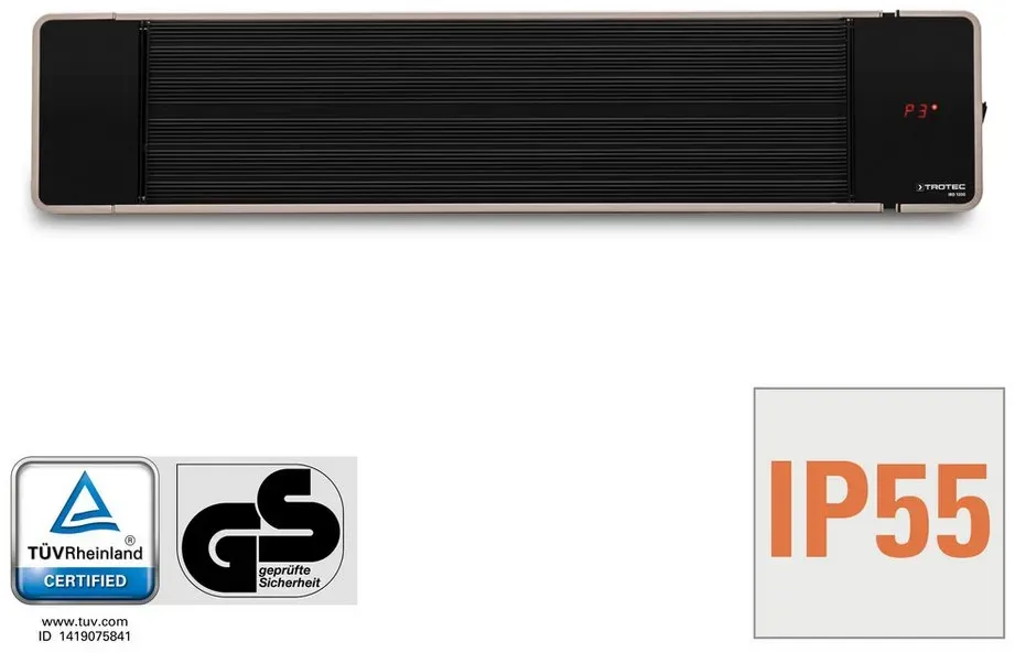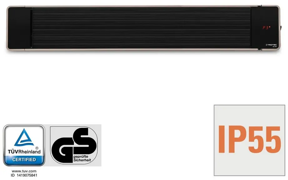 Kategorie: Heizstrahler - Trotec - GTIN:4052138104750 - Maße & Gewicht Breite , 93.000 cm, Höhe , 20.000 cm, Gewicht , 9.0000 kg, Technische Daten WEEE-Reg.-Nr. DE , 99663130, - 204,99 Euro bei OTTO - gefunden von billiger.de Der Semptec Profi-IR-Dunkelheizstrahler mit Keramik-Heizelement und IP65 Schutz ist besonders robust und langlebig. ![]() ![]() Semptec Profi-IR-Dunkelheizstrahler, Fernbedienung, Keramik, 3.100 Watt, IP65