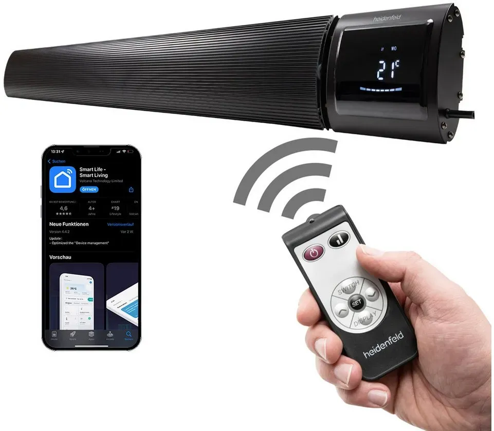 Kategorie: Heizstrahler - Eurom - GTIN:8713415334999 - Geeignet für (halb) offene Terrassen Wand- oder Deckenmontage Inkl. Fernbedienung - 109,00 Euro bei ALDI ONLINESHOP - gefunden von billiger.de Der KESSER Dunkelheizstrahler ist mit Fernbedienung und WiFi-App ausgestattet, was ihn besonders komfortabel in der Bedienung macht. ![]() ![]() KESSER® Dunkelheizstrahler Heizstrahler mit Fernbedienung & WiFi APP 2400W Terrassenheizer Infrarot Terrassenheizstrahler Wand-Heizstrahler Schwarzstrahler Quarzstrahler Terrassenstrahler Timer