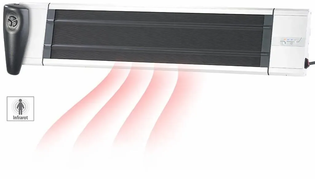 Zustand: Neu - Elektroheizkörper - Semptec Urban Survival Technology - NX9302-944 - EAN: 4022107306539 - Hohe Wärmeleistung ohne Licht abzustrahlen - Wärmt den Körper und nicht die Luft - 2 Heizstufen: mit 1.200 und 2.400 Watt - Volle Wärmeabstrahlung in nur 3 Minuten - Für innen und außen - Fernbedienung und Timer-Funktion Profi-Infrarot-Dunkelheizstrahler RA-324 zur Wand- & Deckenmontage - Hocheffektive Infrarot-Technik: geringer Stromverbrauch bei hohem Wirkungsgrad - Schnellheizend: volle Wärmeabstrahlung in nur 3 Minuten erreicht - Fernbedienung: reguliert Wärmeleistung und Timer - Ein/Aus-Schalter - Maße: 109 x 23 x 5 cm, Gewicht: 6,2 kg Ideal für Balkon, Terrasse, Wintergarten u.v.m. - Spendet Wärme ohne Licht abzustrahlen - Für den Innen- und wettergeschützten Außenbereich: IP55 (spritzwassergeschützt) - Platzsparende Flachbauweise - Stromversorgung Heizstrahler: 230 V, Kabellänge: ca. 190 cm Für Wand- und Decken-Montage geeignet - 2 Heizstufen: 1.200 Watt und 2.400 Watt - Timer: Heizstrahler schaltet sich nach 5 Stunden automatisch ab - Wärme-Abstrahlwinkel einstellbar: 15° - 45° - Stromversorgung Fernbedienung: 2 Batterien Typ AAA (bitte dazu bestellen) Dunkelheizstrahler inklusive Fernbedienung, Wand- und Deckenhalterung und deutscher Anleitung. Wärmestrahler - Außerdem relevant oder passend zu: Fernbedienungen, Wandhalterung, Innenbereich, Heizlüfter, Heizkörper, beheizbar, Terrassen, Strahler - Bei Einzelbestellung senden wir den Artikel direkt im ... Der Semptec Infrarot-Dunkelheizstrahler RA-324 ist eine empfehlenswerte Option mit 2.400 Watt Leistung und IP55 Schutz für den Außeneinsatz. ![]() ![]() Semptec Infrarot-Dunkelheizstrahler RA-324 Timer Fernbedienung 2.400 Watt IP55 Heizung