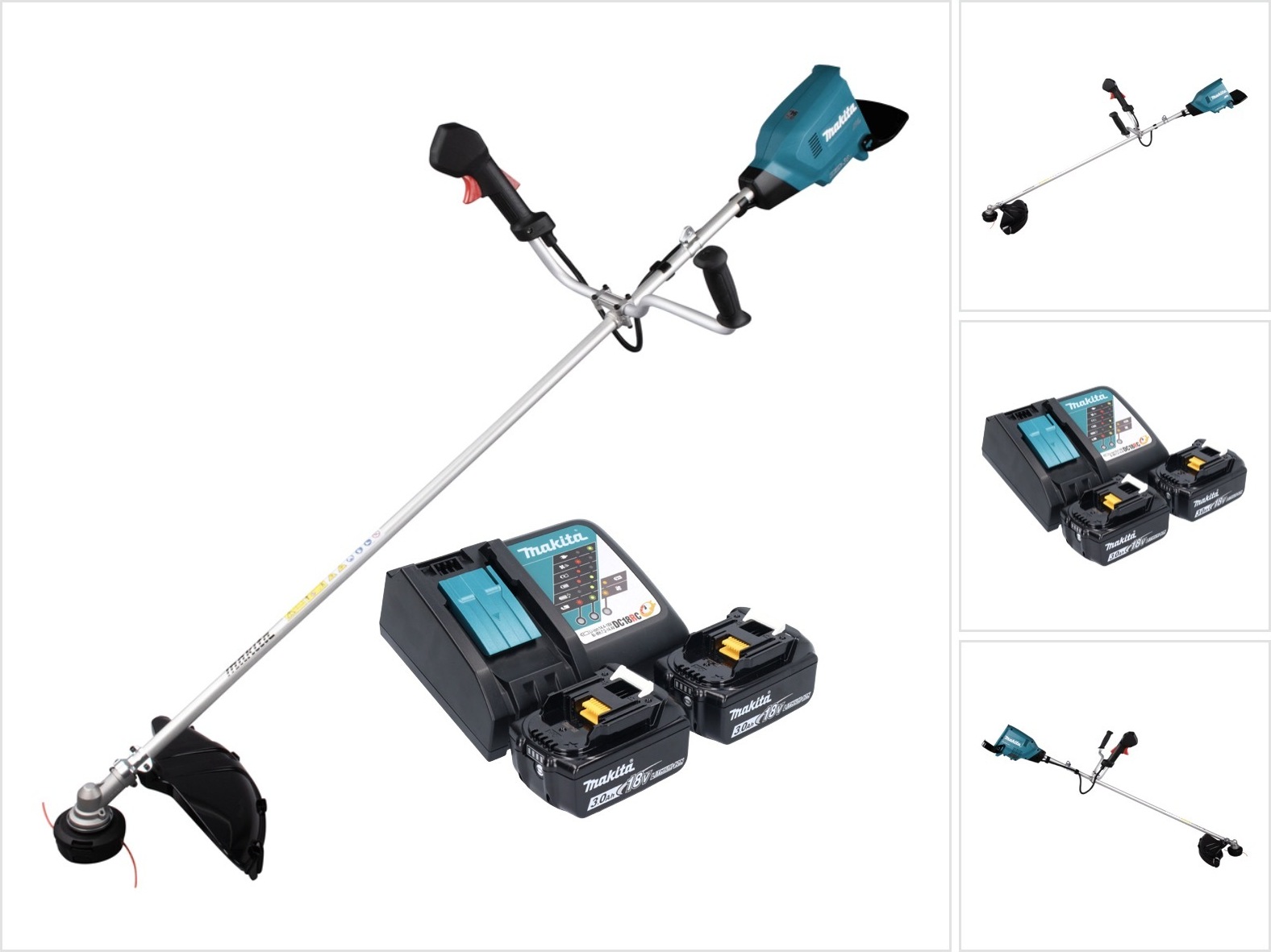 EAN: 4064677105938 - Lieferumfang: - 1x Makita DUR 369 A Akku Freischneider - 1x Schlagmesser 2-Zahn ( D-66064 ) - 1x Messerkopf Kunststoff ( 198383-1 ) - 1x Zubehörbeutel ( 831304-7 ) - 1x 2-Fadenkopf Tap&Go ( 123556-7 ) - 1x Steckschlüssel ( 782238-6 ) - 1x Sechskantstiftschlüssel 4 mm ( 783202-0 ) - 1x Hosenträgergurt - 2x Makita BL 1840 B 18 V 4,0 Ah Akku - 1x Makita DC 18 RC Akku Schnell Ladegerät Produktbeschreibung: Der Makita DUR 369 A ist ein leistungsstarker Akku Freischneider mit einer 3-stufigen Drehzahleinstellung. Er verfügt über einen starken 1.000 Watt-Motor und wird inklusive Fadenkopf, Metall- und Kunststoffmesser geliefert. Mit seinem Zweihandgriff mit asymmetrischer Form liegt er besonders gut in der Hand. Der Freischneider ist mit ADT (Automatic torque Drive Technology) ausgestattet, was bedeutet, dass die Drehzahl automatisch reguliert wird, um je nach Anforderung eine optimale Leistung zu erzielen. Zusätzlich verfügt er über AFT (Active Feedback Sensing Technology), die den Motor sofort stoppt, wenn sich das Werkzeug blockiert. Der Akku Freischneider verwendet zwei in Reihe geschaltete 18-V-Akkus, die parallel in separate Akkuhalterungen eingeschoben werden. Der bürstenlose Motor ist wartungsfrei und langlebig. Er verfügt auch über eine Elektronik-Schalter für stufenlose Drehzahlsteuerung sowie eine 3-stufige elektronische Drehzahleinstellung. Mit der XPT (Extreme Protection Technology) ist der DUR 369 A optimal vor Staub und Spritzwasser geschützt, ... Ein empfehlenswertes Set mit 2 Akkus (5,0 Ah) und Ladegerät, das eine längere Betriebszeit ermöglicht. ![]() ![]() Makita DUR 369 ART2 Akku Freischneider 36 V ( 2x 18 V ) 43 cm Brushless + 2x Akku 5,0 Ah + Ladegerät