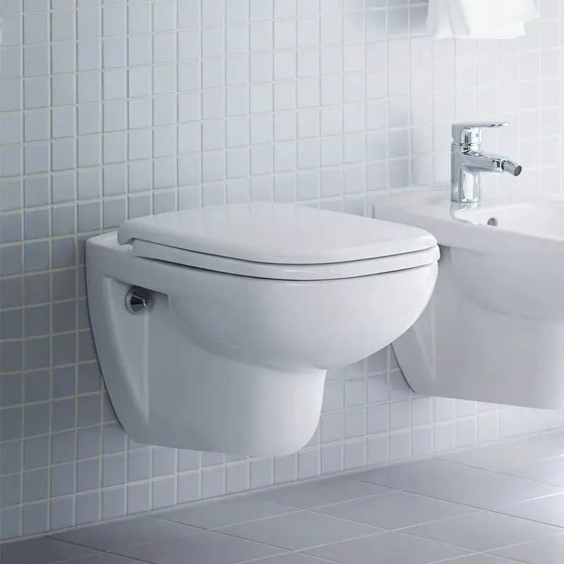 Keramik Badezimmerwaschtische & Schränke - EAN:4021534842757 - Duravit Wand-WC D-Code 2535090000Artikelnummer: 2535090000Farbe: Weiß HochglanzMaße: 355 x 545Tiefspülerfür 4,5 Liter SpülwasserWC-Sitz muss separat bestellt werden: 067310000 oder 0067390000Besonders effizienter, sparsamer Wasserverbrauch: Unified Water Label (UWL) Klasse 1Aus hochwertiger, langlebiger Sanitärkeramik: Besonders widerstandsfähiges, kratzresistentes Material mit hohem Härtegrad, reinigungsfreundlicher und hygienischer OberflächeGeschlossener Spülrand für gleichmäßige Wasserverteilung ohne Überspritzen und maximale Hygiene: Durch kleine Öffnungen kann kaum Schmutz eindringen.Große Spülwassermenge 4,5 LiterKeramischer Spülwasserverteiler für hygienische FlächenspülungKomplett glasierter Spülrand: Glatte Oberfläche verhindert das Ansetzen von Schmutz und RückständenTiefspüler: für minimale GeruchsbelästigungWandhängende MontageHinweis: Wird kein Vorwandelement verwendet, wird die Befestigung #006500 empfohlen. - gefunden von Kelkoo Dieses Stand-WC mit Flachspülung und HygieneGlaze ist eine solide Wahl für 82,72 Euro. Skybad.de Duravit D-Code Stand Flachspül WC 2109092000 Weiß Hochglanz, HygieneGlaze, Abgang waagerecht