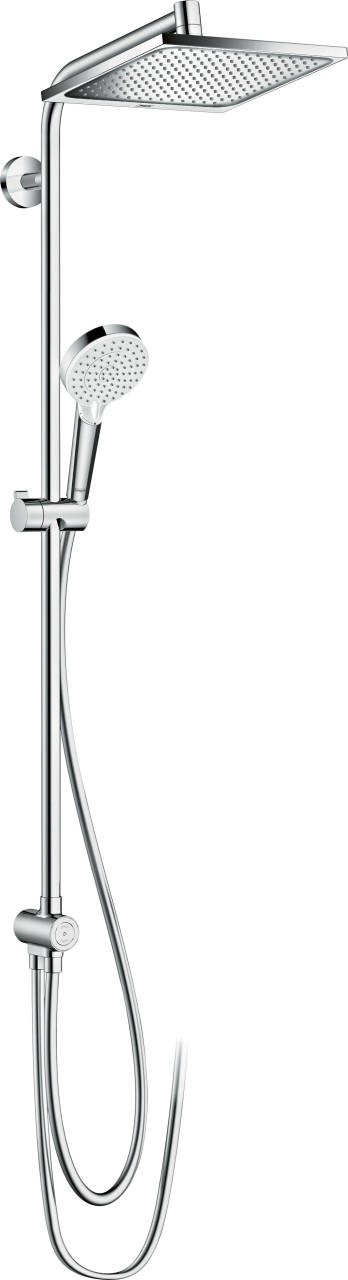 Kategorie: Brausegarnituren - Hansgrohe - GTIN:4011097775906 - Das Hansgrohe Duschsystem Crometta E 240 1jet mit Thermostat überzeugt mit seinen 2 einstellbaren Strahlarten. Dank einer Strahlfläche mit 240x240 mm (Kopfbrause) und 100 mm (Handbrause) Durchmesser bietet der Duschkopf eine optimale Wasserverteilung und sorgt somit für herrliche Entspannung beim Duschen. 2 verschiedene Strahlarten inkl. Regendusche Beim Crometta Vario Duschkopf sind verschiedene Strahlarten möglich. Der Rain-Strahl sorgt für eine angenehme, großflächige Regendusche. Entspannend wirkt auch der starke und konzentrierte IntenseRain, der optimal Verspannungen im Schulter- und Nackenbereich löst. Die beiden Strahlarten sind bei der Crometta Vario Handbrause einfach und variabel durch Schieben des Reglers an der Strahlscheibe einstellbar. Stilsicher mit Weiß/Chrom-Look Das Crometta E 240 Duschsystem ist durch den schicken Weiß/Chrom-Look ein Hingucker in jedem Badezimmer. Das Duschsystem kann mit vielen verschiedenen Armaturen kombiniert werden. Praktisch und innovativ Wer das Duschsystem Hansgrohe Crometta E 240 kauft, kann sich auf praktisches Komplettset für die Dusche freuen. Dank der Brausestange und dem Brausehalter (Schieber), dessen Neigungswinkel um 45° verstellbar ist, findet der Duschkopf inkl. Brauseschlauch optimalen Halt. Außerdem bringen die große Kopfbrause und das Brausethermostat Flexibilität Sicher duschen Dank einer einstellbaren Temperaturbegrenzung und einer Sicherheitssperre ... Die Reno EcoSmart-Version ist perfekt für die Renovierung, da sie eine einfache Installation ermöglicht und gleichzeitig Wasser spart. ![]() Hansgrohe Showerpipe Crometta E 240 Reno EcoSmart chrom, 27289000 27289000