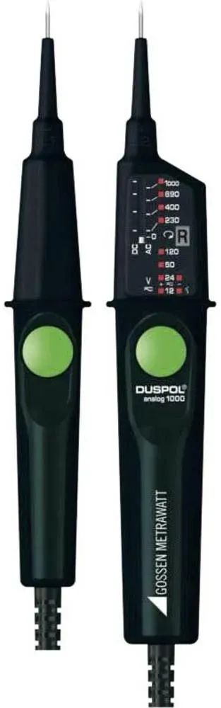 Kategorie: Spannungsprüfer - Benning - GTIN:4011333214091 - Mit Drehfeldanzeige und zuschaltbarer Tauchspul-Pegelanzeige Anzeige von Gleich- und Wechselspannungen CAT IV 600V, CAT III 1000V, nach IEC/EN 61243-3 Norm (DIN VDE 0682-401) zugelassen - 64,89 Euro bei Amazon Marketplace Automotive - gefunden von billiger.de Dieser Gossen Metrawatt DUSPOL analog 1000 für 76.67 Euro ist ein vielseitiges Gerät mit LED-Anzeige und Vibrationsfunktion für verbesserte Benutzerfreundlichkeit. ![]() ![]() Gossen Metrawatt DUSPOL analog 1000 Zweipoliger Spannungsprüfer CAT III 1000 V, CAT IV 600 V LED, Vibration