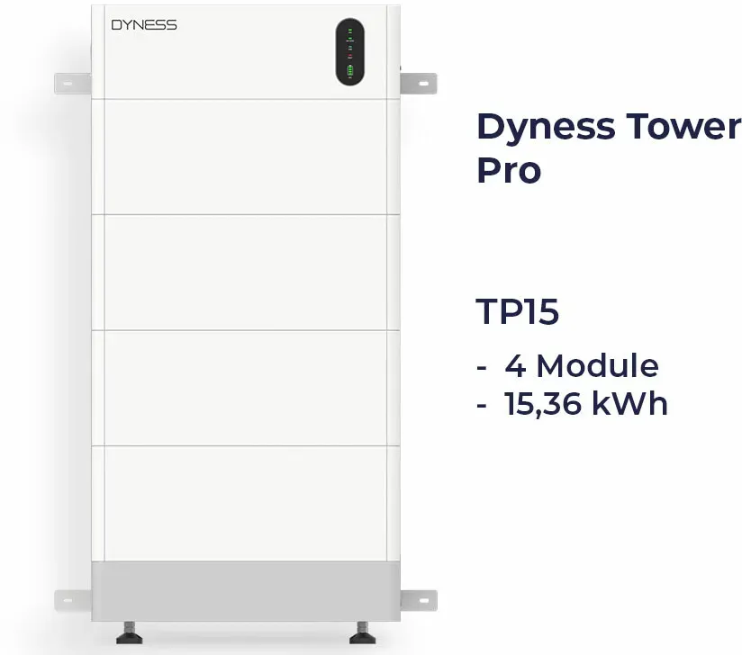 Dyness tower pro tp15 META PreisvergleichMit dem Meta-Preisvergleich suchen Sie gleichzeitig bei den großen Preisvergleich Portalen!Jetzt live Suche nach dyness tower pro tp15 starten! Dyness tower pro tp15 KaufberatungWas ist der Dyness Tower Pro TP15?Der Dyness Tower Pro TP15 ist ein modularer Hochvolt-Lithium-Eisenphosphat-Energiespeicher (LiFePO4) für private und gewerbliche Anwendungen[2]. Er besteht aus vier stapelbaren Batteriemodulen und einer zentralen Steuereinheit (BCU), bietet eine Gesamtkapazität von 15,36 kWh (nutzbare Kapazität: 14,59 kWh) und kann durch Parallelschaltung auf bis zu 276,48 kWh erweitert werden[1][2]. Das System ist IP55 geschützt, bietet eine 10-Jahres-Garantie und ist für den Einsatz in Europa zertifiziert[1][2]. Wichtige Produktmerkmale im Überblick| Merkmal | Details | |-------------------------------|-------------------------------------------------------------------------| | Kapazität | 15,36 kWh (nutzbar: 14,59 kWh)[1][2][5] | | Technologie | Lithium-Eisenphosphat (LiFePO4), Hochvolt (384 V)[1][2][10] | | Modularität | 4 Module, stapelbar, Plug-and-Play, bis zu 12 Systeme parallel[1][2] | | Lade-/Entladeleistung | 1C (15,36 kW), sehr schnelles Laden/Entladen möglich[1][2][3] | | Zyklenfestigkeit | Bis zu 8.000 Zyklen[2] | | Empfohlene Entladetiefe | 95%[3][5][10] | | Schutzart | IP55 (staub- und spritzwassergeschützt)[1][10] | | Temperaturbereich | -20°C bis +55°C (mit integrierter Heizung)[2][10] | | Gewicht | ca. 171-195,5 kg (je nach Quelle)[1][10] | | Abmessungen | ca. 587 x 310 x 1230 mm[1][10] | | Kommunikation | CAN, RS485, RS232[10] | | Sicherheit | Integriertes Feuerlöschsystem, Reaktion in 5 Sekunden[2] | | Erweiterbarkeit | Bis zu 276,48 kWh durch Parallelschaltung[1][2] | Beliebtheit und Marktposition