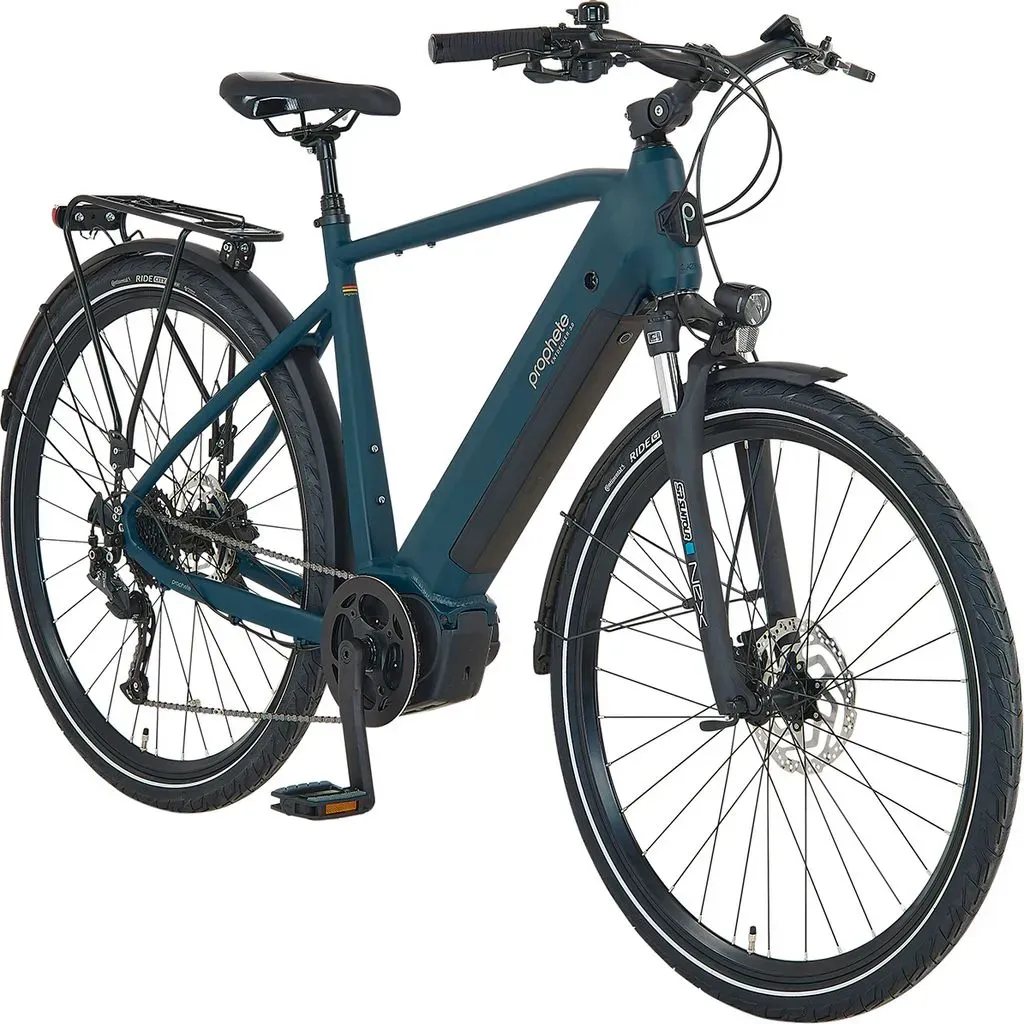 Kategorie: E-Bikes - Prophete - GTIN:4014607565943 - Prophete Urban Elektrofahrrad Heckmotor Mit dem Prophete Urbanicer 2.0 haben wir ein E-Bike entwickelt, das nicht auf den ersten Blick als E-Bike zu erkennen ist. Ein für die Stadt ausgelegtes Urban E-Bike mit 28 Contact Urban Bereifung von Continental bietet zuverlässiges Fahren, dank Pannenstopp. Die elektronischen Komponenten wurden bestmöglich im Design versteckt und so wurde z.B. der 10 Ah (360 Wh) Akku mit Lithium-Ionen-Zellen ganz dezent im Unterrohr integriert und fällt so nicht direkt ins Auge. Die Rahmenarchitektur des Trapezrahmens mit einer Rahmenhöhe von 48 cm wirkt hierbei nicht massig, sondern robust und zuverlässig. Je nach Fahrweise und Untergrund sind Reichweiten von bis zu 110 km mit einer Ladung des Akkus möglich, aber dieses E-Bike ist für den Sprint durch den Alltag konzipiert und nicht für lange Strecken. Agiles Handling ermöglicht Ihnen dabei der ansprechend sportive Lenker mit geschraubten Komfortgriffen. Sie können also einfach an den Autos vorbeifahren und bist dynamisch unterwegs. Ein kraftvoller 36 Volt Motor im Hinterrad sorgt bei der Fahrt für ein Gefühl, als würden Sie angeschoben werden. Der im Tretlager integrierte Drehmomentsensor dosiert dabei die Unterstützung optimal auf Ihre Bedürfnisse und Ihren Tritt angepasst. Bei einem maximalen Drehmoment von 40 Nm bringt das Urbanicer 2.0 satte 250 Watt Leistung auf die Straße und auch hier wurde auf Optik und Funktion geachtet. Der Motor ... Dieses Trekking E-Bike bietet mit seinem Mittelmotor und 9-Gang Kettenschaltung eine gute Performance für anspruchsvollere Touren. ![]() ![]() Prophete Entdecker 3.0 Trekking E-Bike 28 Zoll - 360Wh - Integrierter Akku - Mittelmotor AEG - 9-Gang Kettenschaltung - HDY. Scheibenbremse - Rahem...