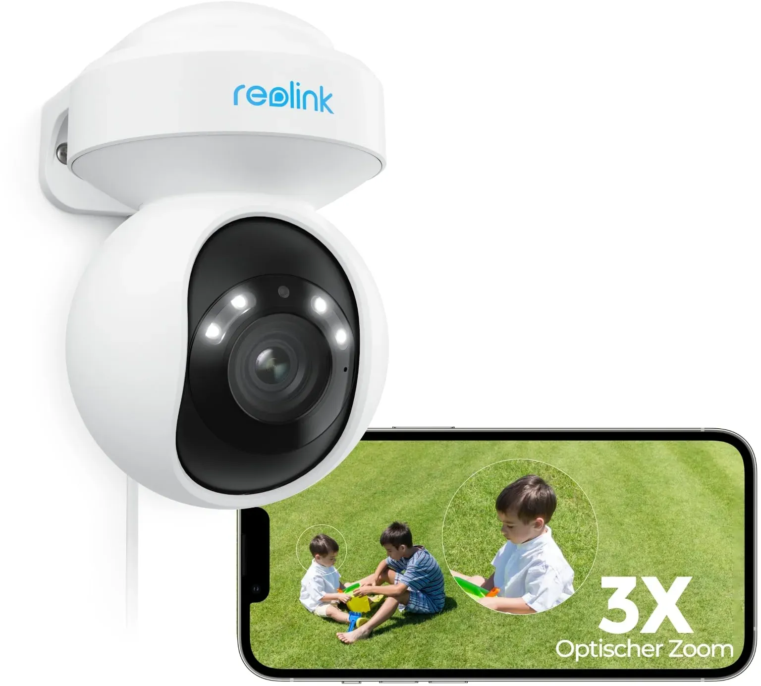 Reolink - EAN: 6978285033775 - Personen-, Fahrzeug- & TiererkennungSchwenk- & Neigefunktion mit Auto-TrackingFarbnachtsicht mit Spotlight4K mit 3 optischem Zoom4K 8MP visuelle Brillanz entfesselnTauchen Sie ein in die unvergleichliche Klarheit von 4K 8MP und erleben Sie atemberaubend lebendiges Video, ohne ein einziges Detail zu verpassen.3X Optischer ZoomSehen Sie Details in mehr Klarheit, selbst aus größerer Entfernung.Schwenken-neigen, automatisch verfolgenAusgestattet mit Schwenk- & Neigefunktion bietet die Kamera eine 360 -Ansicht. Auto-Tracking verfolgt Personen, Fahrzeuge und Tiere, damit nichts unbemerkt bleibt.Nachtsicht in FarbeMit den Spotlights beleuchten Sie die Umgebung für klare Nachtaufnahmen mit leuchtenden Farben und reichhaltigen Details, Tag & Nacht nie mehr den überblick verlieren.WiFi 6, das WiFi der nächsten GenerationMit der blitzschnellen Geschwindigkeit von Wi-Fi 6 erleben Sie nahtloses, verzögerungsfreies Live-Streaming. Durch die Unterstützung der 5/2,4GHz-Frequenz können Sie zwischen beiden Frequenzen wechseln, um ein stabileres Netzwerk zu erhalten.Personen-/Fahrzeug-/TiererkennungEchtzeit-Benachrichtigung über verdächtige Personen, Fahrzeuge und Tiere erhalten.Zweifache Abschreckung durch Licht & TonBei Bewegungserkennung aktiviert die Kamera Spotlight- & Sirenenalarm gegen mögliche Gefahren. Zusätzlich kann das Zwei-Wege-Audio Eindringlinge abschrecken.Bleiben Sie über Ihr Telefon/PC verbundenSofort-Bewegungsalarme erhalten und per Reolink ... ![]() ![]() Reolink Wi-Fi 6 4K PTZ überwachungskamera Aussen WLAN mit 3X Optischem Zoom, Auto-Tracking, WLAN Kamera Outdoor mit 2,4/5GHz Wi-Fi, Person/Auto/Tiererkennung, Spotlights, 2-Wege-Audio, E1 Outdoor Pro