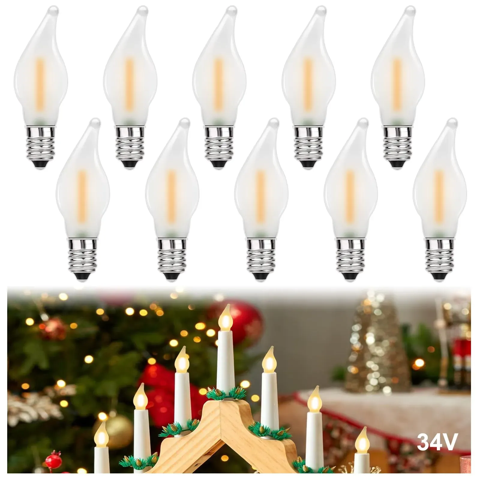 Auf Lager Versand durch AmazonTobeBright E10 Kerze Glühbirnen 3W, 34V Kerzenlicht Bogen Brücke Glühbirne Ersatz, Dimmbare Warmweiß 2200K, E10 Kegelkerze Weihnachtsbirne, für Kerzenständer, Feen Lichter, Spitzkerze, Pack von 10