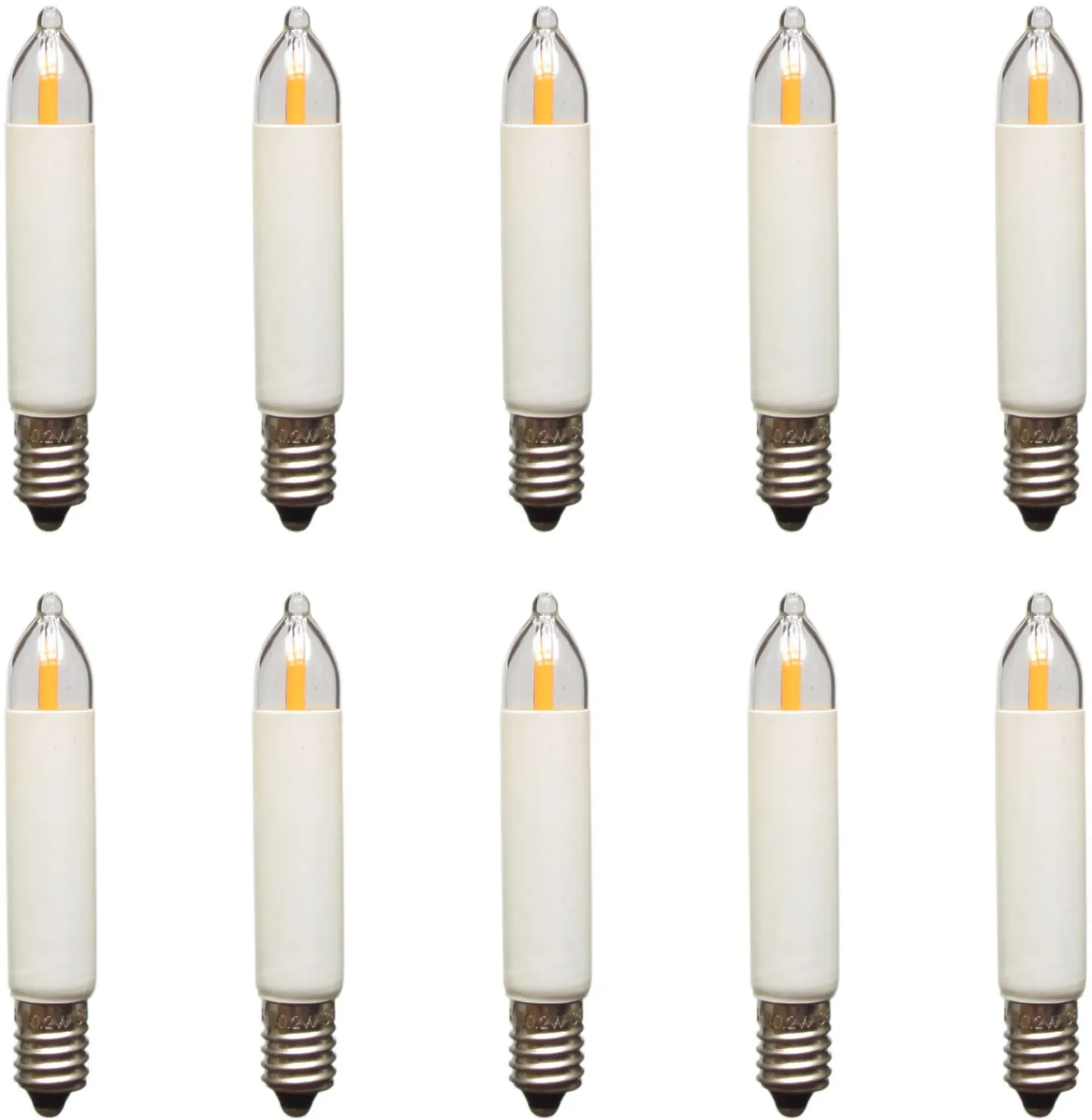 Auf Lager Versand durch AmazonAGOTD E10 LED Glühbirne Kerze, LED Ersatzbirne 0.2W ersatz 1W Riffelkerze, Warmweiß 2200K Schwibbogen, 5-55V für Lichterbogen, Adventsleuchter, Lichterkette, 10 Stück
