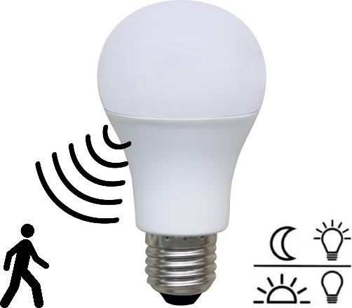 Auf Lager Versand durch AmazonElrigs E27 LED Lampe mit Bewegungsmelder und Dämmerungssensor, 7W ersetzt 60W Glühbirne, Reichweite, Zeit- und Dämmerungsschwelle einstellbar, Warmweiß (3000K)