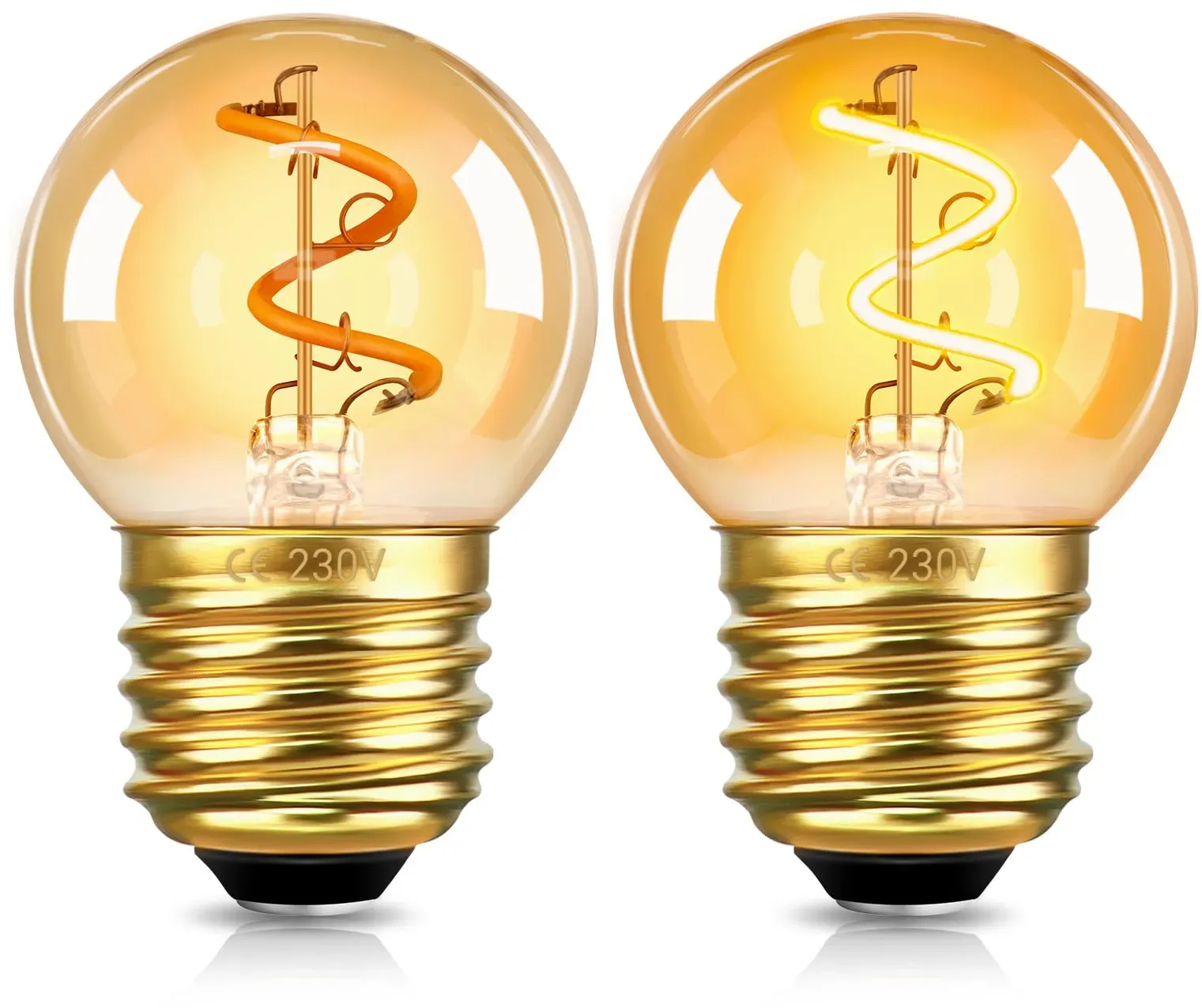 Verfügbarkeit: Auf Lager - EEK: F - Kategorie: LED-Lampen - MZYOYO - Vintage Glühbirne E27: Dank LED-Filamenttechnologie spart diese LED-Lampe nicht nur Energie, sondern behält auch den klassischen Stil bei, besonders schön bei offenem Licht anzusehe. Niedriger Energieverbrauch: MZYOYO LED Glühbirne E27 2W ersetzt 15W halogenlampe, kein flackern,wohlig warmes Licht bei geringem Stromverbrauch. Hohe Farbwiedergabe: Die Lampe lässt die Farben sehr naturgetreu und lebendig erscheinen, dank einer guten Farbwiedergabe gemäß dem Farbwiedergabeindex (RA80). Einfache installieren: Diese 2 Watt G45 Glaskolbenlampe ist mit der Standard-Edison-Schraube E27 ausgestattet und kann problemlos in herkömmliche E27-Sockelleuchten eingesetzt werden. Breite Anwendung: Perfekt sieht super aus,Ideal für dekorative Innenleuchten ,Geeignet für Kronleuchter, Wandlampen, Tischlampen, Deckenlampen, Wohnzimmer,Stehlampen, Café, Partykeller ,Schlafzimmer und Küche sowie. - 9,98 Euro bei Amazon Marketplace Home - gefunden von billiger.de Dieses 2er-Pack bietet eine dekorative Vintage-Edison-Glühbirne mit geringem Verbrauch und warmweißem Licht. ![]() ![]() Varta SCNNC E27 LED Filament 2200K Vintage Edison Glühbirne 1W G40 Mini Globe 230V, Ersetzt 10 Watt Glühlampe, Nicht Dimmbar, G40 E27 LED Glühbirne Retro Dekorative für Kronleuchter, 2 Stück