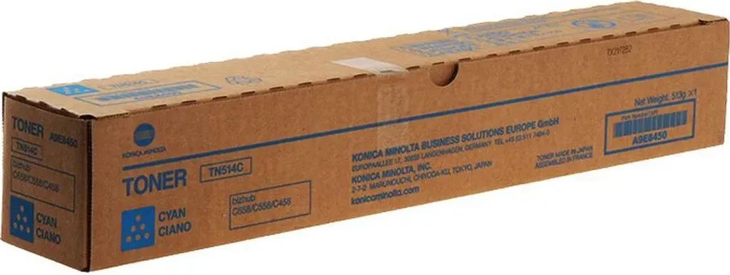 Verfügbarkeit: Lieferung in 1-2 Werktagen - Kategorie: Toner - Konica Minolta - GTIN:4053768189582 - Konica Minolta A9E8450 - TN-514C Toner-Kit cyan, 26.000 Seiten/5% für Minolta Bizhub C 458 - 85,43 Euro bei tinten-center.com - gefunden von billiger.de Ein Original-Toner im oberen mittleren Preissegment, der von einem spezialisierten Anbieter stammt. ![]() ![]() Konica Minolta A9E8450 (TN-514) - Cyan - Toner