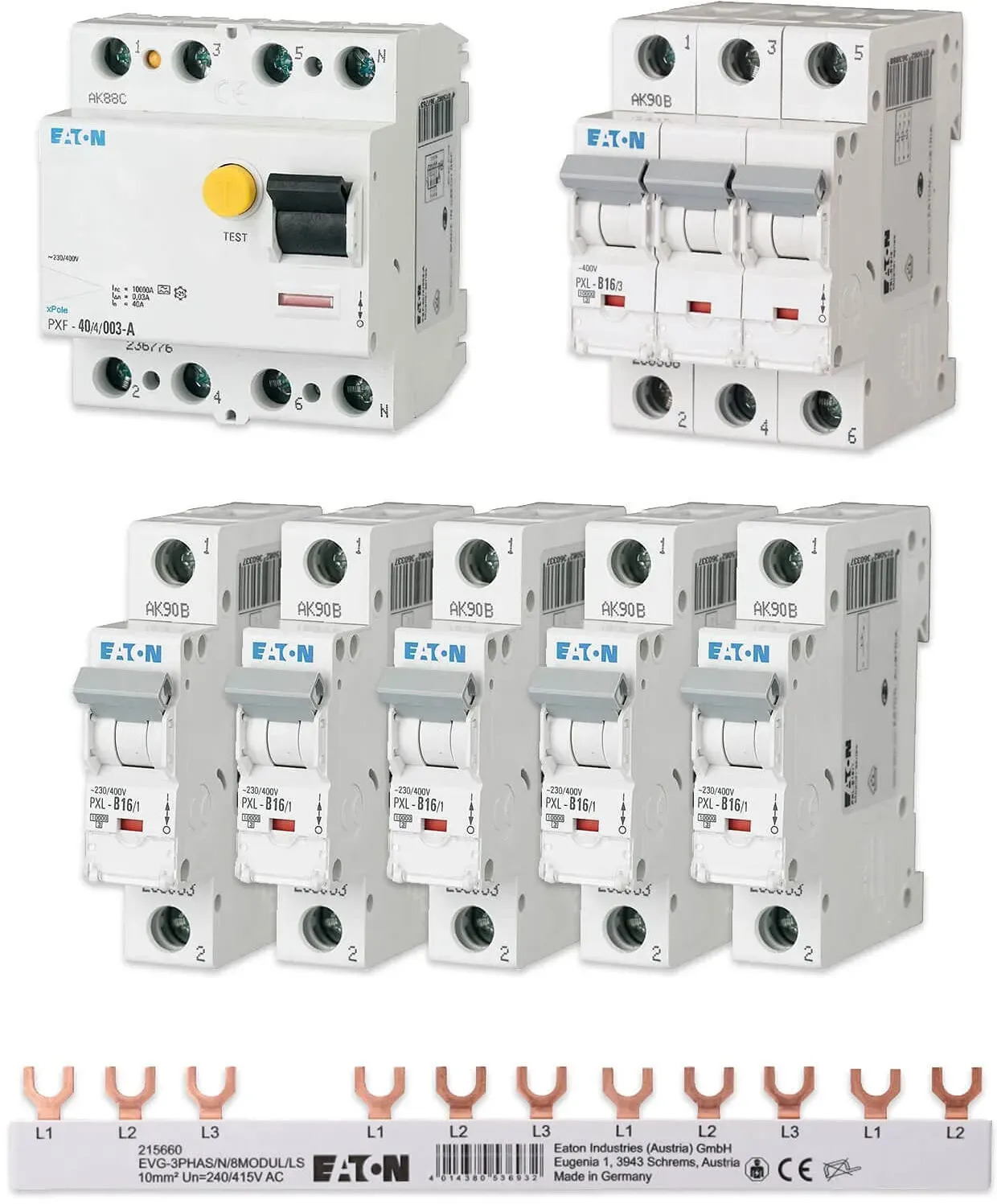 Verfügbarkeit: Bis zu 4 Werktage - Kategorie: Sonstige Elektroinstallationsartikel - Eaton Power Quality - GTIN:4015082367763 - Schützt bei besonderen, nicht geglätteten Formen von Gleichfehlerströmen (Typ A nach EN 61 008). Mit Taste für Funktionsprüfung. - 31,99 Euro bei Thalia.de - gefunden von billiger.de Dieses Set ist ideal für Käufer, die eine umfassende Lösung mit FI-Schutzschalter, LS-Schaltern und Sammelschiene suchen. ![]() ![]() Eaton Power Quality Eaton Set 1x FI PXF-40A 0,03 236776 + 1x LS-Schalter 3-polig PXL-B16/3 236388 + 5x LS-Schalter 1-polig PXL-B16 236033 + 1x FI Sammelschiene EVG-3PHAS/N/8MODULLS 215660