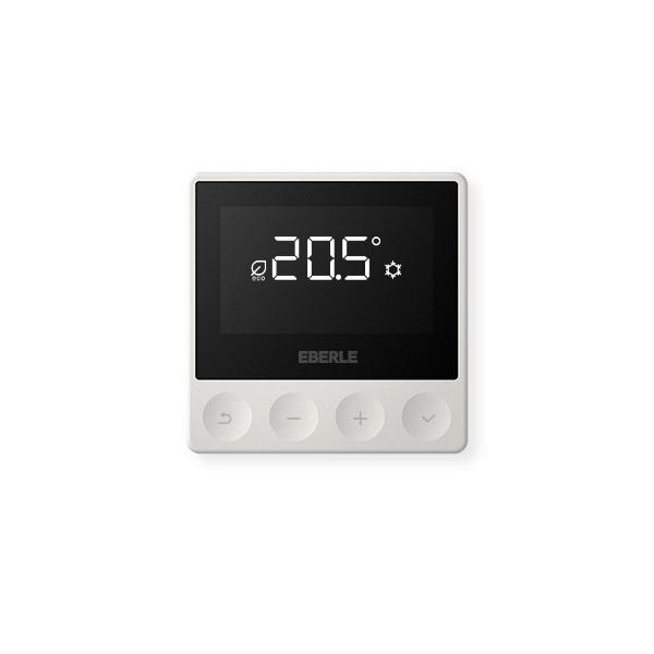 4 Händlerangebote bei billiger.de - Kategorie: Sonstige Elektroinstallationsartikel - EBERLE - Digitaler Aufputz-Raumregler mit sehr geringer Aufbauhöhe von nur 21 mm für Wandbefestigung. Aktivweiß glänzend. Mit Triac-Ausgang. Geeignet für wassergeführte Heizsysteme. Sehr grosses schwarzes Display mit Hinterleuchtung. Textanzeige zur selbsterklärenden Bedienung. Universal-Eingang zur Heizen/Kühlen Umschaltung, Absenkung oder Präsenz wählbar. Kurzzeit-Timer (Eco-/Party-Modus) für stundenweise änderung der Temperatur. Frostschutz. Temperaturanzeige an lokale Verhältnisse anpassbar. Unbefugtensicherung. Reglerverfahren PWM oder 2-Punkt. Aufputzmontage oder direkt auf UP-Dose mit waage-/senkrechten Befestigungslöchern. - GTIN:4017254169755 ![]() ![]() Eberle ATR 4500 AP-Thermostat als Raumregler, 5...30 C, RAL9016 glänzend, AC 230V, Triac, 6 therm. Stellantriebe schaltbar (18 W gesamt)