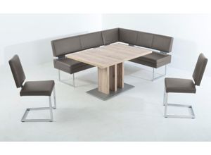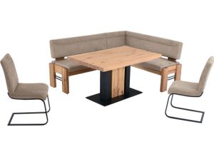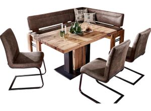 Esszimmergarnituren Wohnen Tische Stühle - - Das Set Floyd Floyd Floyd können Sie ihren Essbereich ansprechend im 'Vintage'-Design neu gestalten. Der anspruchsvolle Materialmix aus Roheisen und massiven Holz ist ein echter Hingucker. Aufbau- und Premiumservice sind inklusive., Produktdetails: Markeninformationen: Die Begeisterung der K+W Polstermöbel wird nicht nur durch unsere Produkte bestimmt, sondern auch durch die von Erfindern, Pionieren und Konstrukteuren geprägte Unternehmensgeschichte. Seit der Unternehmungsgründung im Jahr 1799 in Lichtenfels haben wir uns von der ehemaligen Korbmacherei zu einem der führenden Speisezimmer-Hersteller in Europa entwickelt. Seit 2007 sind wir Mitglied der Himolla-Gruppe. Dank eigener Entwicklung, Kreativiät und Leidenschaft sind wir flexibler Partner für unsere Kunden und Trendsetter zugleich. Heute ist K+W mit rund 500 Mitarbeitern an europaweiten Produktions- und Lagerstätten vertreten, darunter am Standort in Mitwitz/Oberfranken. In neuen Trends und Entwicklungen sehen wir Chancen - für das Produkt, die Gesellschaft und dem Kunden. Aus diesem Grund richten wir unsere Strategie stetig auf künftige Herausforderungen aus. Als Möbelhersteller ist K+W mit dem Zertifikat des goldenem M ausgezeichnet, ist Mitglied im Klimapakt der Gütegemeinschaft Möbel, , Ausstattung: Staufach unter der Sitzfläche, Maßangaben: Breite: 203 cm, Tiefe: 163 cm, Höhe: 90 cm, Sitzhöhe: 51 cm, Material: Material Gestell: Massivholz, Bezug: Microfaser 760, ... ![]() Eckbankgruppe K+W KOMFORT WOHNEN 'Floyd', braun (braun 75, balkeneiche 437,), B:163cm H:90cm T:203cm, Sitzmöbel-Sets, Eckbankgruppe, Stauraum-Eckbank, wahlweise rechts oder links langer Schenkel 203cm