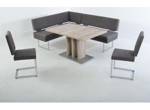 Esszimmergarnituren Wohnen Tische Stühle - - Modern, stilvoll und durchdacht: Mit diesen Attributen kann sich die Eckbankgruppe Santiago Santiago von K+W Komfort Wohnen ist mit langem Schenkel links und rechts erhältlich., Produktdetails: Markeninformationen: Die Begeisterung der K+W Polstermöbel wird nicht nur durch unsere Produkte bestimmt, sondern auch durch die von Erfindern, Pionieren und Konstrukteuren geprägte Unternehmensgeschichte. Seit der Unternehmungsgründung im Jahr 1799 in Lichtenfels haben wir uns von der ehemaligen Korbmacherei zu einem der führenden Speisezimmer-Hersteller in Europa entwickelt. Seit 2007 sind wir Mitglied der Himolla-Gruppe. Dank eigener Entwicklung, Kreativiät und Leidenschaft sind wir flexibler Partner für unsere Kunden und Trendsetter zugleich. Heute ist K+W mit rund 500 Mitarbeitern an europaweiten Produktions- und Lagerstätten vertreten, darunter am Standort in Mitwitz/Oberfranken. In neuen Trends und Entwicklungen sehen wir Chancen - für das Produkt, die Gesellschaft und dem Kunden. Aus diesem Grund richten wir unsere Strategie stetig auf künftige Herausforderungen aus. Als Möbelhersteller ist K+W mit dem Zertifikat des goldenem M ausgezeichnet, ist Mitglied im Klimapakt der Gütegemeinschaft Möbel, , Maßangaben: Breite: 158 cm, Tiefe: 199 cm, Höhe: 89 cm, Sitzhöhe: 52 cm, Bodenfreiheit: 30 cm, Material: Material Füße: Metall, Bezug: Microfaser Struktur 755, Farbe: Farbbezeichnung: darkgrey 80, Farbhinweise: Bitte beachten Sie, dass ... ![]() Essgruppe K+W KOMFORT WOHNEN, schwarz (nero 81,), B:199cm H:89cm T:158cm, Sitzmöbel-Sets, Essgruppe, langer Schenkel links oder rechts, 2 Freischwinger, 1 Funktionstisch