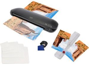 Kategorie: Laminiergeräte - Peach - GTIN:7640460547801 - Peach PL755+ 4 in 1 Laminierset inkl. Laminiergerät, Eckenrunder, Rollenschneider und Folien, für Heim und Büro. - HIGHLIGHT: Innovatives A3 Laminiergerät mit Eckenrunder, Rollenschneider und Folien – vielseitig einsetzbar. Peach Laminergeräte haben , statt der üblichen . - TESTSIEGER: Preis-Leistungssieger bei verleich.org - KOMFORTABEL: Mit dem beiliegenden Rollenschneider Dokumente und Folien bequem zuschneiden. - (KINDER)SICHER: Scharfe Ecken an Dokumenten und Folien mit dem praktischen Eckenrunder einfach abrunden. - INKLUSIVE: Großes Set mit 20 Laminierfolien (1xA3, 11x A4, 1x A5, 7x Visitenkarten) liegt bei. - EMPFEHLUNG: Mit Peach Highspeed Laminierfolien PP580-22/ PP525-22 erhöhen Sie die Laminiergeschwindigkeit um ein Drittel. - EINFACHE HANDHABUNG: Einschalten und sobald Lichtsignal grün leuchtet laminieren. Folienstau schnell beheben durch integrierte ABS Taste. Energie sparen dank automatischer Temperaturkontrolle. - UNIVERSELL: Geeignet für alle handelsüblichen Folien in allen Grössen bis max. A3 und 2x 125 mic dicke Folien. - EINSATZBEREICH: Im Home Office, Büro, Schule, Restaurants - VIELSEITIG: Laminieren erhöht die Lichtechtheit und Lebensdauer von Fotos. Anwendung für wertvolle Fotos und wichtige Dokumente und Präsentationen, Visitenkarten, ID-Karten und Gepäckanhänger, Schulungsmaterial, Menükarten, Lesezeichen, Kinderzeichnungen, Rezepten, Lernkarten uvm - QUALITäT: Blasen- und faltenfreies ... ![]() Laminiergeräte-Set Olympia A330 Plus, mit Schneidelineal, Eckenrunder und Folien
