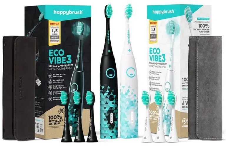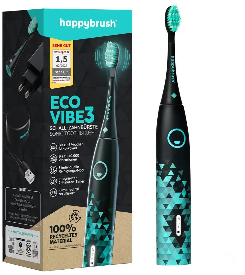 FazitDie Eco Vibe 3 ist eine gute Wahl, wenn du eine nachhaltige, zuverlässige und einfach zu bedienende Schallzahnbürste suchst - besonders für Reisende und alle, die Wert auf Umweltfreundlichkeit legen. Sie ist nicht mit allen High-End-Funktionen ausgestattet, überzeugt aber durch ihre Praxisnähe und ihren fairen Preis. Jetzt live Suche nach eco vibe 3 starten! Empfohlene Eco vibe 3 Angebote*Durch Kufe ber Links zu Hndlern kann diese Website eine Provision erhalten, u.a. durch das eBay Partner Network und das AmazonPartnerNetHier ist eine Auswahl von 15 repräsentativen und empfehlenswerten Treffern für "eco vibe 3", die verschiedene Preisbereiche und Arten abdecken, ohne Zubehörteile: Dieses neuwertige Angebot ist eine besonders günstige Möglichkeit, eine Eco Vibe 3 zu erwerben. ![]() ![]() happybrush ECO - VIBE 3 eBay Schallzahnbrste schwarz-neuwertig fr quietschsaubere Zhne