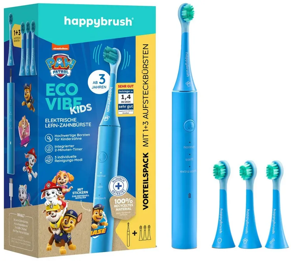 Dieses Angebot ist ein Beispiel fr Angebote, die krzlich auf dem eBay-Marktplatz in der Kategorie 260774 verfgbar waren. Bitte aktualisieren Sie die Suchergebnisse um aktuelle Angebote zu erhalten. Dieses Paw Patrol Kids Bundle ist eine weitere kinderfreundliche Option, die das Zähneputzen für die Kleinen attraktiver macht. ![]() ![]() happybrush Elektrische Zahnbürste happybrush ECO VIBE KIDS Paw Patrol + 3 Refills blau
