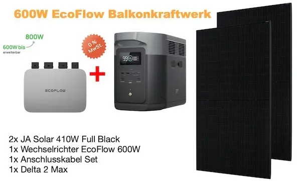 bestellbar, Lieferzeit: 1-2 WochenBalkonkraftwerk EcoFlow | 2x JA Solar 410W FB + Wechselrichter PowerStream