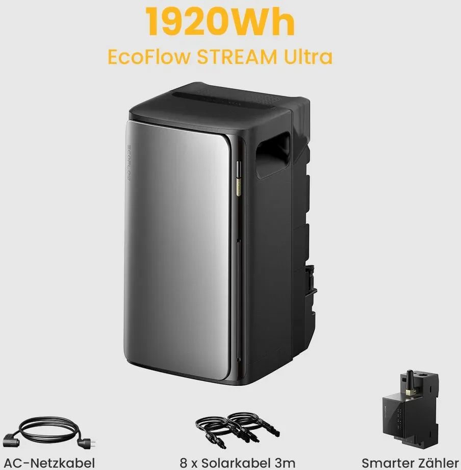 lieferbar-in 3-4 Werktagen bei dirEcoflow Balkonkraftwerk EcoFlow STREAM Ultra 1,92 kWh Balkonkraftwerk mit Speicher 2080W, 800 W, LiFePo4 Batterie, (All-in-One Stromspeicher mit Wechselrichter), 2800W Solareingang (4 MPPT), 1200W Dual AC-Anschlüsse