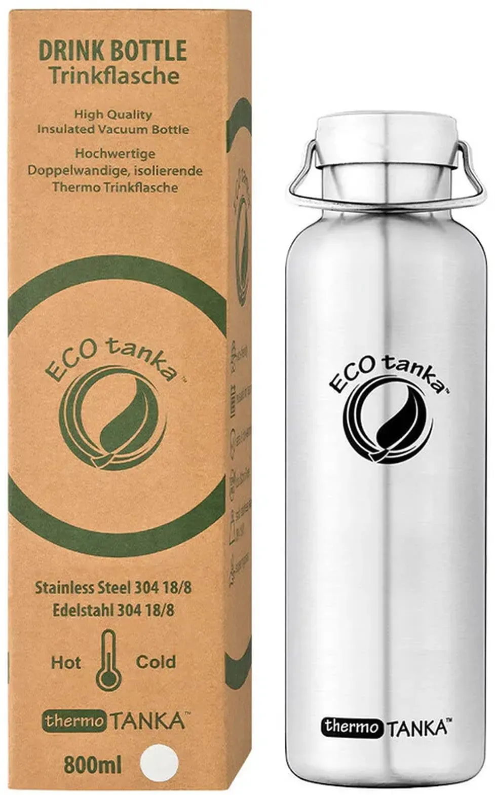 Kategorie: Trinkflaschen - ECOtanka - GTIN:0700175875266 - Die flowTANKA von ECOtanka: Im tollen Design, der ideale Begleiter bei sportlichen Aktivitäten, passt in Rucksack- und Fahrradgetränkehalterungen Premium-Qualität - lebensmittechter Edelstahl 304 (18/8): umweltfreundlich, antibakteriell und langlebig BPA-FREI & VEGAN, ultraleicht, geschmacks- & geruchs-neutral für eine langanhaltende Frische - 34,90 Euro bei Amazon Marketplace Home - gefunden von billiger.de Diese 0,8L thermoTANKA ist eine kompakte Thermoflasche, die sich gut für Tee oder Kaffee eignet. ![]() ![]() ECOtanka 0,8L Edelstahl thermoTANKATM Thermo-Trinkflasche | Doppelwandig, Vakuumisoliert | Hält Getränke >8 Std. heiß/kalt | Perfekt für Tee, Kaffee, Glühwein, Punsch | Ideal für Freizeit und Sport