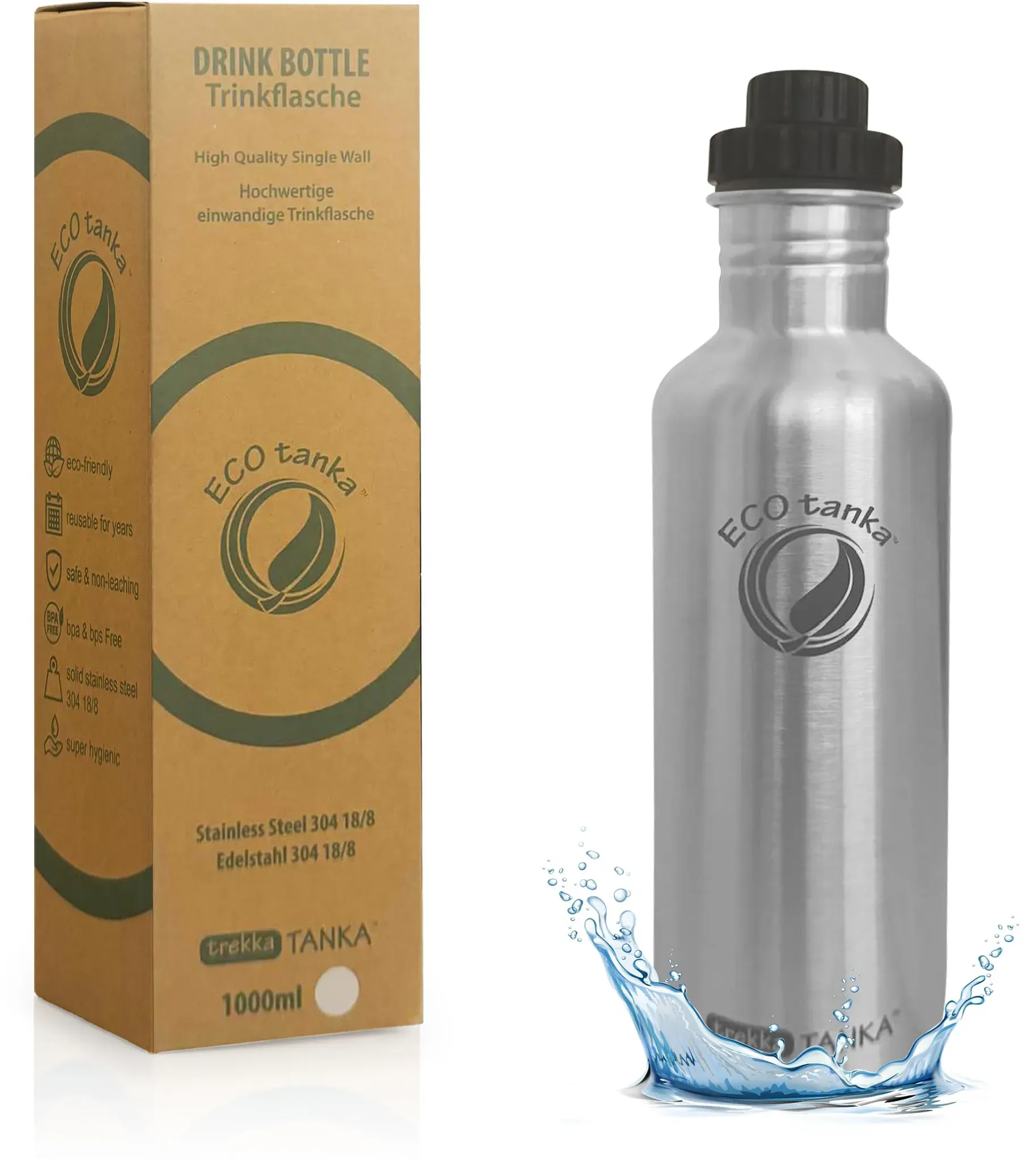 Zustand: Neu - Trinkflaschen - ECOtanka - ECO-040-R - EAN: 0609465325040 - IMMER GENUG WASSER DABEI - Die trekkaTANKA ist deine ultraleichte Trinkflasche 1L für Alltag, Sport oder als Outdoor Trinkflasche - ideal beim Wandern, im Büro oder auf Reisen. Kein ständiges Nachfüllen mehr. HOCHWERTIGER EDELSTAHL 304 - Die Trinkflasche Edelstahl 1L ist BPA-frei, geschmacksneutral und rostfrei. Perfekt für normal kohlensäurehaltige Getränke - langlebig, sicher und nachhaltig. ROBUST & VIELSEITIG EINSETZBAR - Ob als Thermosflasche, Fahrradflasche Edelstahl oder Trinkflasche Büro: Die trekkaTANKA ist auslaufsicher, leicht und ideal für Alltag, Sport und Abenteuer. SPÜLMASCHINENFEST & HYGIENISCH - Dank weiter Öffnung und glatter Innenfläche lässt sich die Edelstahlflasche einfach reinigen - per Hand oder in der Spülmaschine. NACHHALTIG & WIEDERVERWENDBAR - Die trekkaTANKA ist eine langlebige, plastikfreie Edelstahlflasche. Vegan, isolierend und ressourcenschonend - deine nachhaltige Trinkflasche für jeden Tag. - Verkäufer: MAM 22 trade im amazon.de Marketplace Die 1,0L trekkaTANKA ist perfekt für längere Ausflüge und Wanderungen, da sie eine gute Menge Flüssigkeit fasst. ![]() ![]() ECOtanka trekkaTANKATM 1,0L Trinkflasche Edelstahl BPA-freie Edelstahl Trinkflasche 1L mit Reduzier-Verschluss | Auslaufsichere Wasserflasche für Sport, Outdoor & Wandern | Nachhaltige Water Bottle