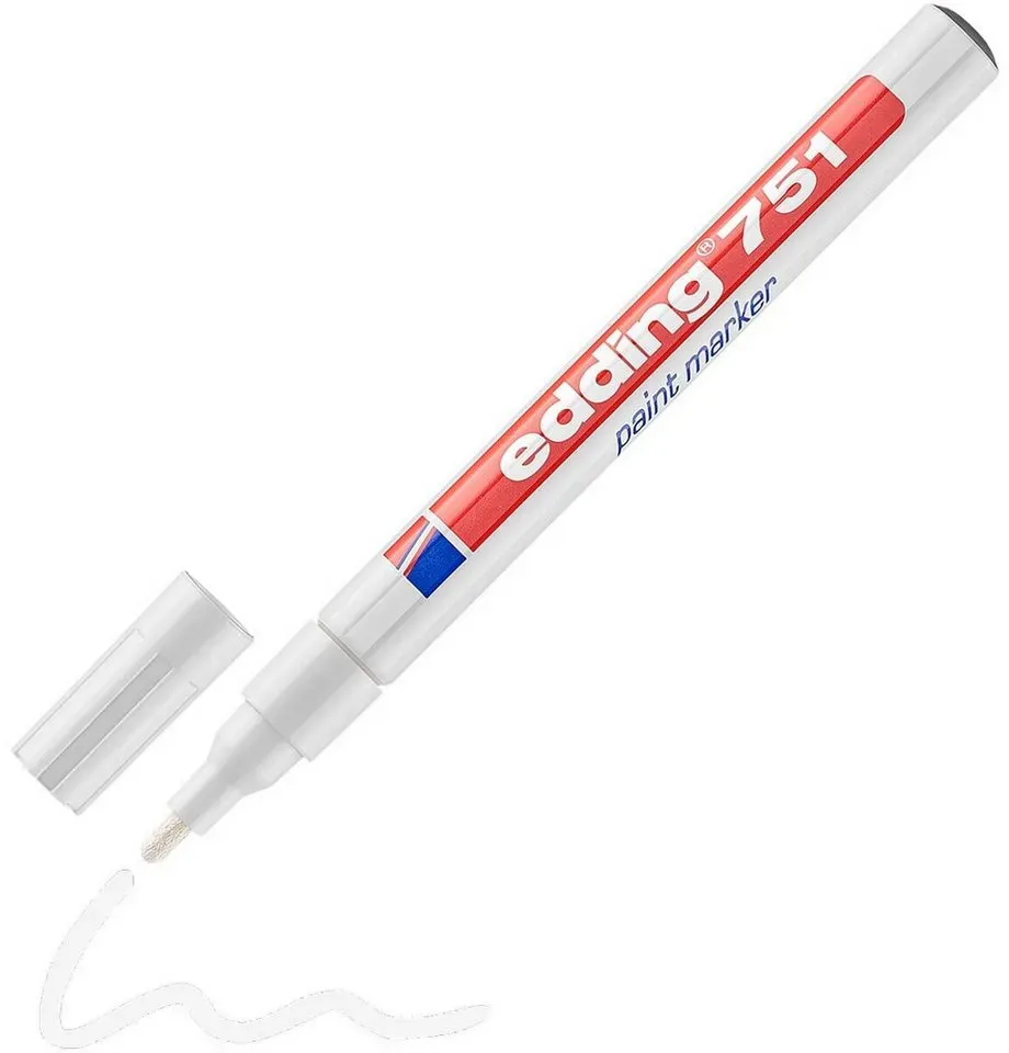 Marker Wohnen Arbeiten Büro- Schreibwaren - - Beliebt für Kunst und Illustration - der edding 751 creative Lackmarker schwarz 1,0 - 2,0 mm, 1 St.Wenn Sie eine permanente Lösung für Ihre Beschriftungen, Kreationen oder Gestaltungen suchen, sind Sie mit dem edding 751 creative Lackmarker schwarz 1,0 - 2,0 mm, 1 St. fündig geworden. Er sorgt dank der hochpigmentierten, deckenden Tinte für perfekte Ergebnisse auf einer Vielzahl von Materialien. Ideal geeignet ist das Produkt für dauerhafte Markierungen auf Glas, Metall, Plastik etc..überzeugt mit FarbeDie Farbe Schwarz ist vielseitig einsetzbar und setzt Akzente in Ihren Projekten. Die runde Griffzone fühlt sich angenehm an und ermöglicht eine flexible Handhaltung. Dadurch passt der edding Lackmarker 751 creative sich an jede Handhaltung an.Runde, 1,0 - 2,0 mm breite SpitzeDadurch, dass die Spitze gleichmäßig rund ist, gewährleistet sie angenehm flüssiges Schreiben und Markieren. Die Stärke des Strichs, den die Spitze erzeugt, beträgt 1,0 - 2,0 mm. Bei Bedarf lässt sich die Spitze problemlos austauschen. Passende Ersatzspitzen können Sie einfach nachbestellen.In Nullkommanix trockenEin weiteres Plus: Die Farbe trocknet sehr schnell und verschmiert somit nicht. Linkshänder profitieren davon erheblich.GeruchsarmDie geruchsarme Tinte mindert das Risiko von Kopfschmerzen, übelkeit sowie Reizungen der Atemwege, die zumeist durch stark riechende Lösungsmittel hervorgerufen werden.LichtresistentDie Tinte ist lichtbeständig und rt ... Dieser weiße Lackmarker ist ein günstiger Einzelstift für den alltäglichen Gebrauch. ![]() Edding Lackmarker »751« weiß