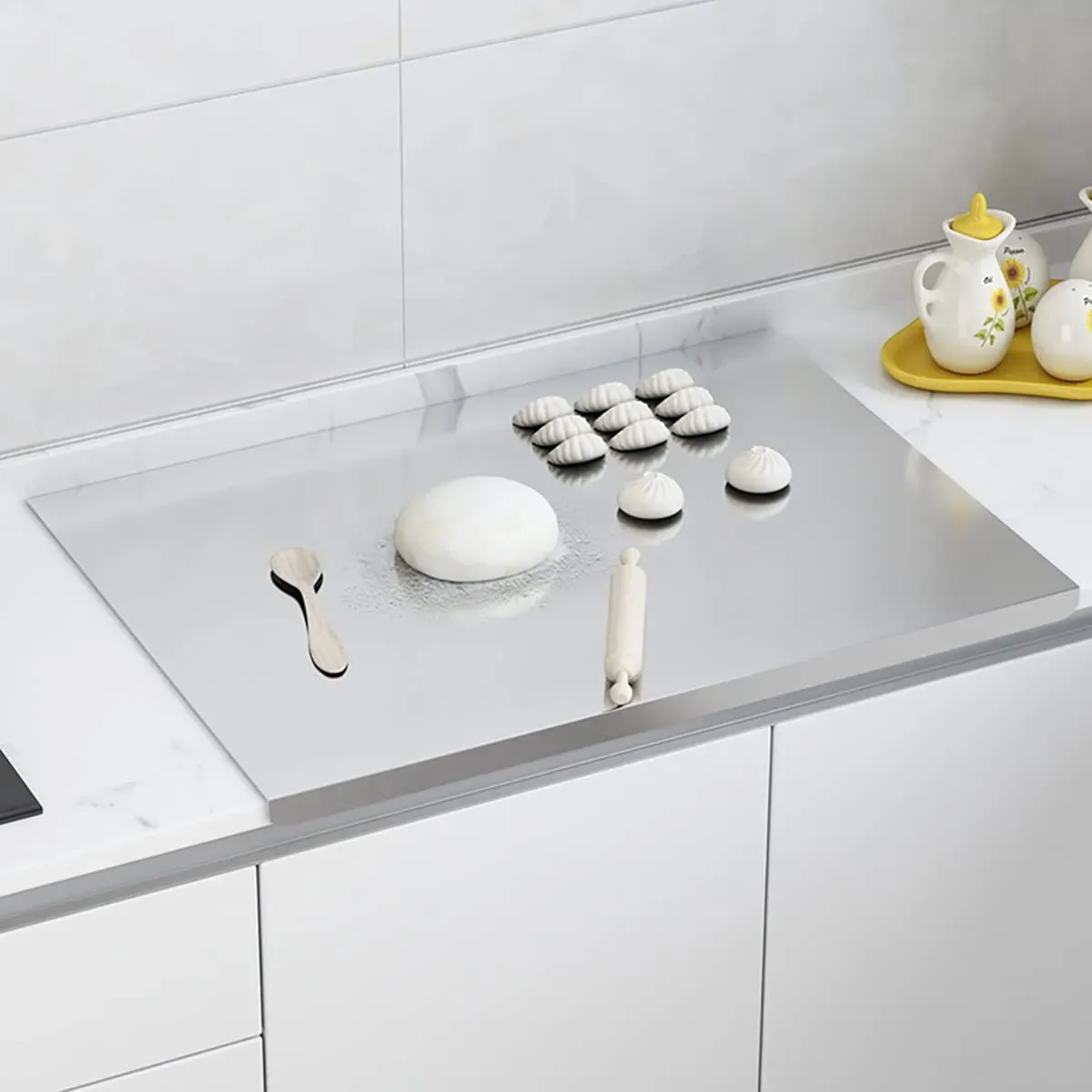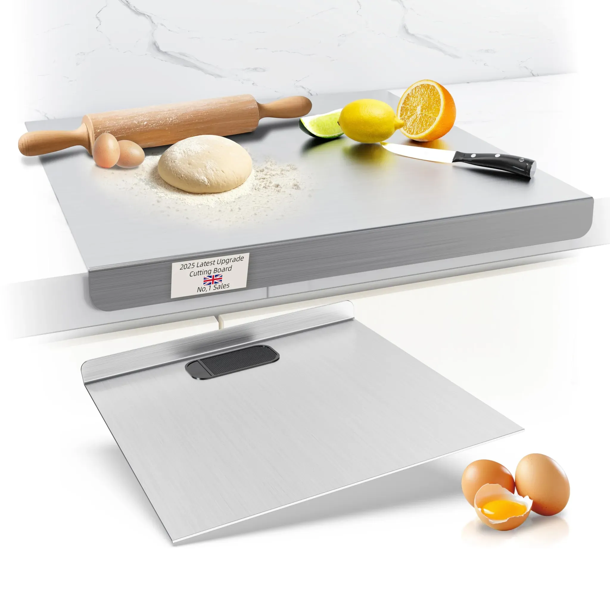 Kategorie: Schneidebretter - goeasyoii - GTIN:0724470611091 - Hochwertiges Material: Hergestellt aus 2 mm lebensmittelechtem Titan für außergewöhnliche Stabilität und Langlebigkeit. Im Gegensatz zu rauen Schnittflächen ist unsere Titanplatte schonend zu Ihren Messern. Es wird Ihre Klingen nicht stumpf machen oder Schäden verursachen, sodass Sie die Schärfe und Lebensdauer Ihrer Lieblings-Küchenwerkzeuge genießen können, damit Ihre Messer in bestem Zustand bleiben Lebensmittelechtes Titan-Schneidebrett Rüsten Sie Ihr Kochgeschirr mit unserem Schneidebrett aus lebensmittelechtem Titan auf. Titan ist bekannt für seine hochfesten Materialien in Lebensmittelqualität und ist das Kernmaterial unseres Schneidebretts, das sich von potenziellen Verunreinigungen in traditionellen Holz- oder Kunststoffbrettern verabschiedet. Ultimative Vielseitigkeit: Perfekt zum Schneiden von Fleisch, Hacken von Gemüse, Kneten von Teig oder Rollen von Nudeln. Ideal zum Zusammenbauen von Sandwiches, zum Zerkleinern von Kräutern und zum Erstellen hygienischer Holzkohlebretter. 9 maßgeschneiderte Größen 9 Abmessungen für alle Bedürfnisse verfügbar: von kompakten Küchen bis hin zu extra großen Flächen für intensive Aufgaben. Finden Sie Ihre ideale Ergänzung für jeden Raum. Rutschfeste Sicherheit: Doppeltes Anti-Rutsch-System: Erhöhter Rand für die Verankerung der Arbeitsplatte. Silikonbasis für maximale Stabilität beim Schneiden. Entwickelt, um Unfälle auch bei intensiven Vorbereitungsarbeiten zu ... Mit seiner großzügigen Fläche und Anschlagkante ist dieses Backbrett ideal für umfangreichere Backprojekte. ![]() ![]() goeasyoii Edelstahl Schneidebrett, Arbeitsplatte Knetbrett Edelstahl Für Kneten & Backen, Küchenplatte, Nudelbrett, Backbrett, Teigbrett mit Anschlagkante, Schneidebretter Metal zum Kneten Küche (60X60cm)