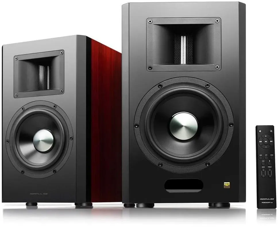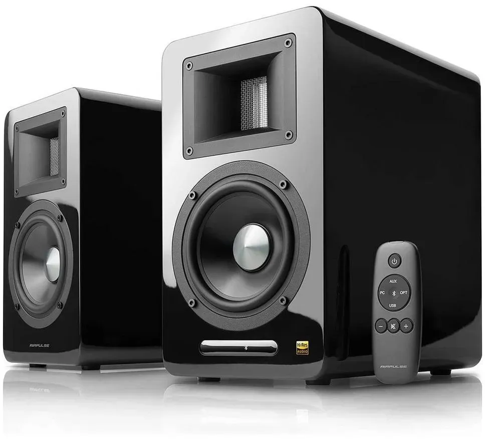Auf Lager Versand durch AmazonEDIFIER AIRPULSE A80 - 2.0 Regallautsprechersystem (100W) mit Bluetooth V5.0 (aptX), Bändchen-Hornhochtöner für präzise und klarste Höhen, vielseitige Anschlussmöglichkeiten, inkl. Fernbedienung