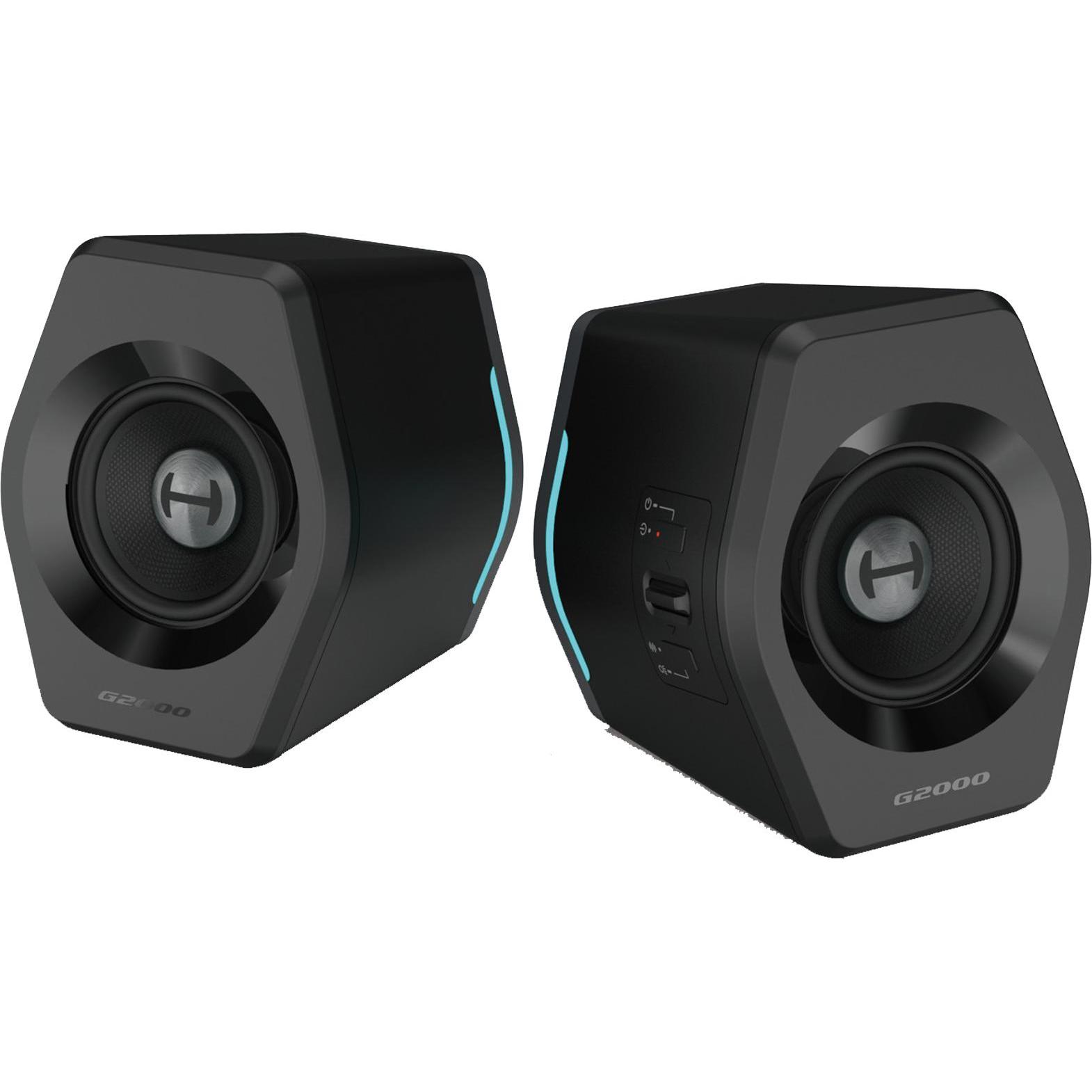 Kategorie: PC-Lautsprecher - Edifier - GTIN:6923520267972 - EDIFIER G2000 Bluetooth Gaming-Lautsprecher Die neuen G2000 Bluetooth Gaming-Lautsprecher von EDIFIER - ein kleines, vielseitig einsetzbares Klangwunder. Einstellbare Klangmodi Mit seinen drei einstellbaren Klangmodi 'Music', 'Game' und 'Movie' passen sich diese kompakten Lautsprecher jeder Situation an und liefern stets allerbesten Sound zur jeweiligen Anwendung, egal ob Musik, Spiel oder Film. Die 7cm großen Full-Range-Lautsprechertreiber leisten jeweils 8W RMS, in der Spitze also 16W insgesamt. RGB-Beleuchtung mit 12 verschiedenen Effekten Die rückseitige RGB-Beleuchtung mit 12 verschiedenen Lichteffekten schafft auch optisch die perfekte Gaming-Atmosphäre. Anschlussfreudig Anschlusseitig erweist sich das G2000 Lautsprechersystem als äußerst vielfältig. Neben Bluetooth können Audioquellen auch per USB (sound card) oder 3.5mm Klinke angeschlossen werden. Das EDIFIER G2000 eignet sich somit hervorragend für die Nutzung am PC, Notebook, Tablet, Handy und sogar TV. - 69,99 Euro bei Media Markt Online Shop - gefunden von billiger.de Ein leicht höherpreisiges Angebot für die Standardversion, das aber von einem renommierten Händler stammt. ![]() ![]() Edifier G2000 (G2000)