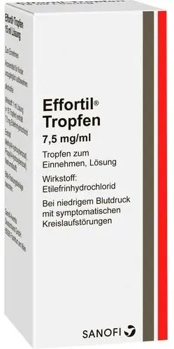 Effortil - Anwendungsgebiet von Effortil Tropfen bei niedrigem Blutdruck und KreislaufstörungenDas Arzneimittel ist ein Blutdruck steigerndes Arzneimittel.Das Präparat angewendet bei Kreislaufregulationsstörungen mit erniedrigtem Blutdruck (Hypotonie), die bei änderung der Körperlage (z. B. beim Aufstehen vom Liegen oder Sitzen) mit Beschwerden wie Schwindel, Schwächegefühl, Blässe, Schweißausbruch, Flimmern oder Schwarzwerden vor den Augen sowie mit einem deutlichen Blutdruckabfall ohne einen Anstieg der Herzschlagrate einhergehen.Wirkstoffe / Inhaltsstoffe / Zutaten7.5 mg Etilefrin hydrochlorid6.24 mg EtilefrinNatrium disulfit Hilfstoff (+)Wasser, gereinigt Hilfstoff (+)Methyl 4-hydroxybenzoat Hilfstoff (+)Propyl 4-hydroxybenzoat Hilfstoff (+)GegenanzeigenDas Arzneimittel darf nicht eingenommen werdenwenn Sie überempfindlich (allergisch) gegen Etilefrinhydrochlorid, Natriumdisulfit, Methyl(4-hydroxybenzoat) oder Propyl(4-hydroxybenzoat) sindbei Kreislaufregulationsstörungen mit erniedrigtem Blutdruck, wenn Blutdruck und Herzschlagrate im Stehtest ansteigen (hypertone Reaktion)bei Bluthochdruck (Hypertonie)bei Entgleisung einer Schilddrüsenüberfunktion (Thyreotoxikose)bei einer Geschwulst der Nebenniere (Phäochromozytom)bei einer Erhöhung des Augeninnendrucks (Engwinkelglaukom)bei Entleerungsstörungen der Harnblase mit Restharnbildung, insbesondere bei Vergrößerung der Vorsteherdrüse (Prostataadenom)bei einer Verhärtung der Blutgefäße (sklerotische Gefäßveränderungen)bei ... Dieses Angebot ist mit 7.41 Euro ebenfalls sehr preiswert und bietet eine gute Alternative zum günstigsten Angebot. ![]() ![]() SERB SA Effortil Tropfen