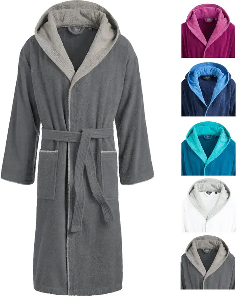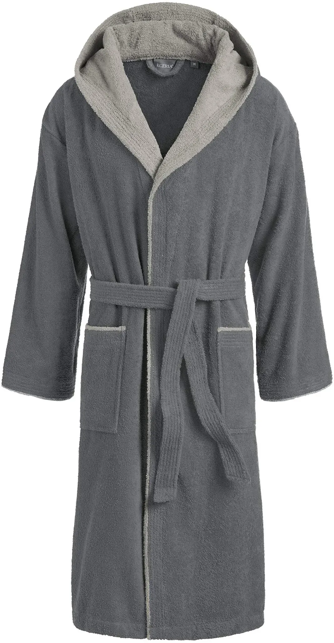 ![]() ![]() Egeria Unisex-Bademantel Cairo, Baumwolle, Kapuze, mit Kapuze und farbigen Akzenten grau XS