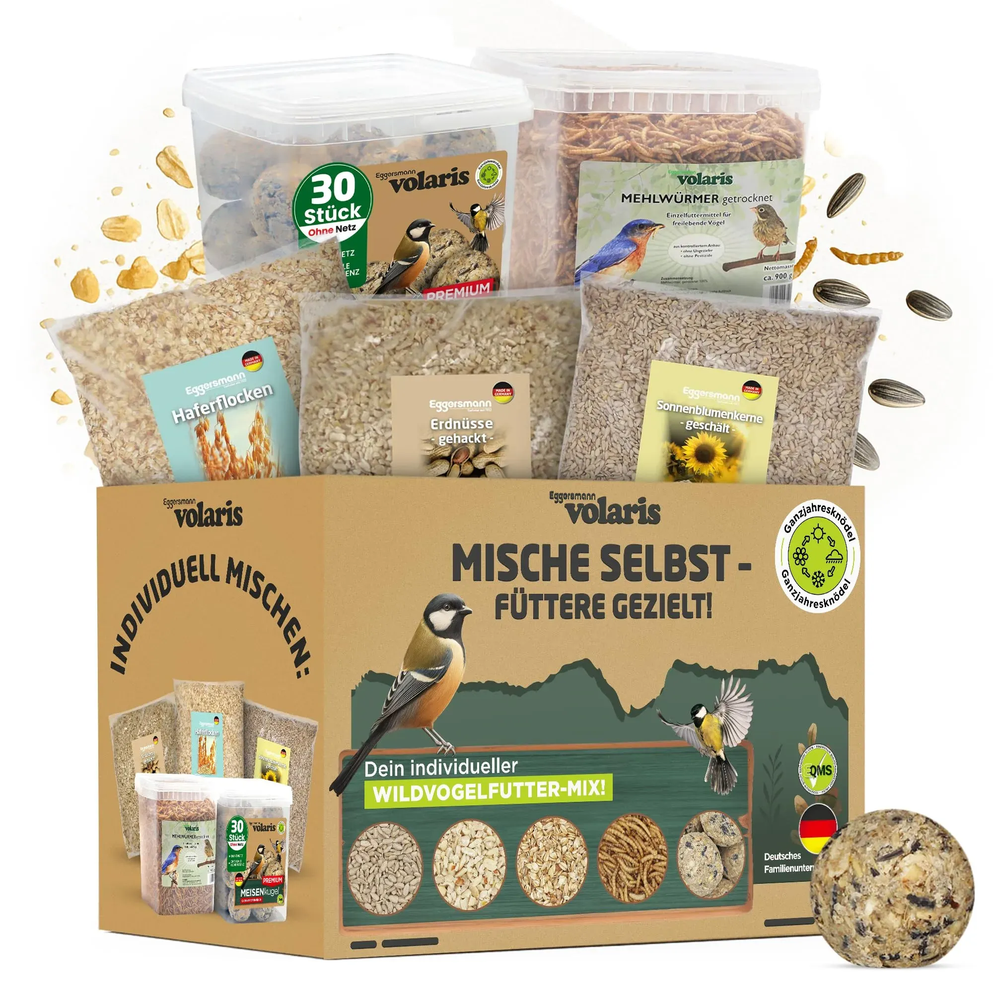 Kategorie: Vogelfutter - Eggersmann volaris - GTIN:4029862014150 - NäHRSTOFFREICH: Die enthaltenen Erdnüsse und gefetteten Haferflocken sind dank ihres ölgehaltes sehr energiereich. Damit sind die Wildvögel bestens für die kalte Jahreszeit gewappnet. EINFACH ZU VERFüTTERN: Das Futter kann ohne Weiteres Mischen ganz einfach verfüttert werden. Einfach aus dem Sack in die Futterstelle geben und die Vögel beobachten. ALLE VOGELARTEN: Das Eggersmann volaris Fettfutter ist für alle Vogelarten als Ganzjahresfutter zu verfüttern und ganzjährig erhältlich. RIESIGE AUSWAHL: Egal ob Meisenknödel, Streufutter oder Futterstangen - Eggersmann liefert Ihnen alles was Sie für Ihre Futterstelle brauchen. MADE IN GERMANY: Alle Eggersmann Produkte werden ausschließlich in unser eigenen Produktion im Weserbergland produziert. Dabei achten wir auf höchste Qualität und Nachhaltigkeit. überzeugen Sie sich selbst. - 35,99 Euro bei Amazon Marketplace Lawn & Garden - gefunden von billiger.de Dieses Selbst-Mix-Bundle bietet eine vielfältige Auswahl an Futterkomponenten, um eine individuelle Mischung zu erstellen. ![]() ![]() Eggersmann volaris Selbst-Mix-Bundle Plus für Wildvögel Sonnenblumenkerne, Erdnüsse, Haferflocken 2 kg, Mehlwürmer 900 g & Meisenknödel 30 STK. Ganzjähriges Vogelfutter zum Mischen
